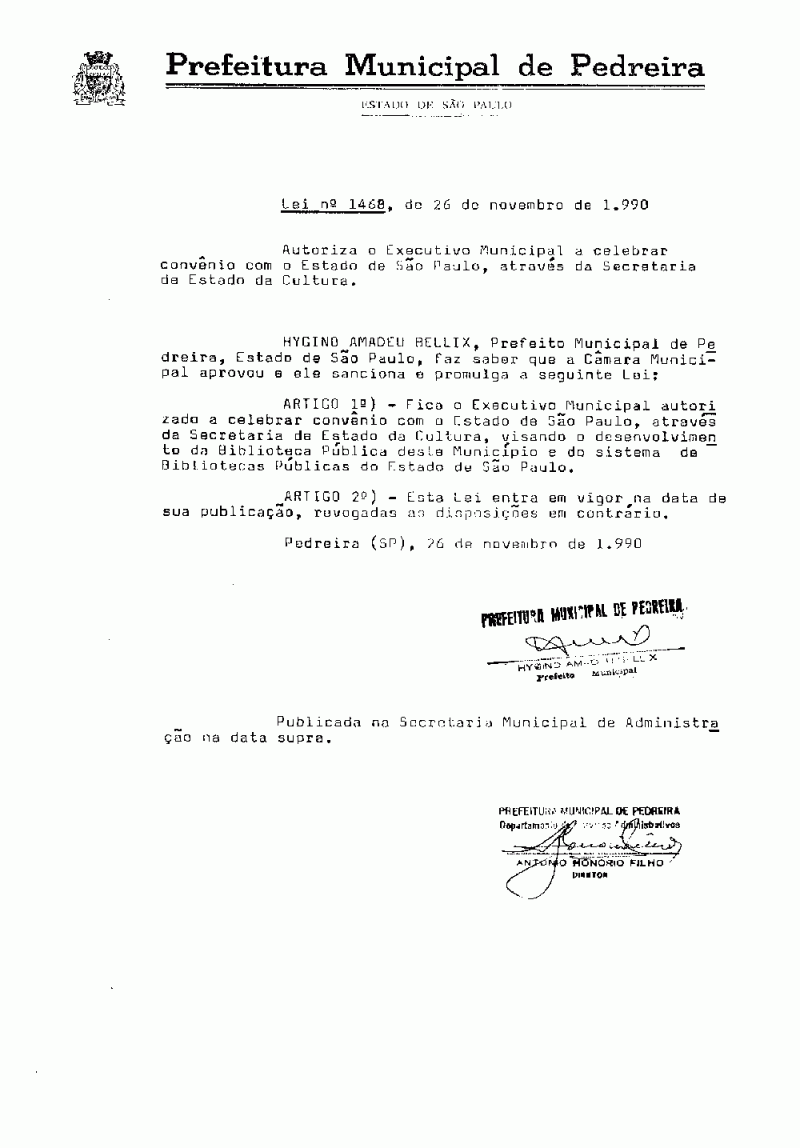 Ementa: Autoriza o Executivo Municipal a celebrar convênio com o Estado de São Paulo, através da Secretaria de Estado da Cultura.