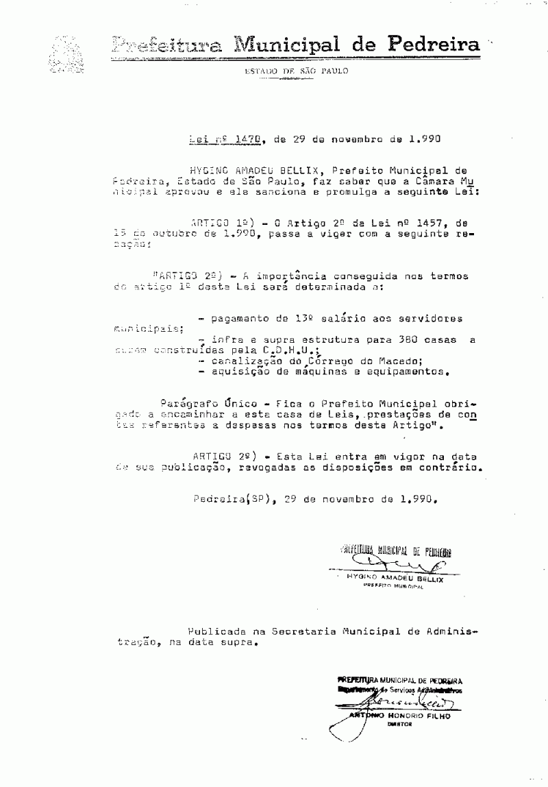 Lei Municipal - N° 1470 de 29/11/1990