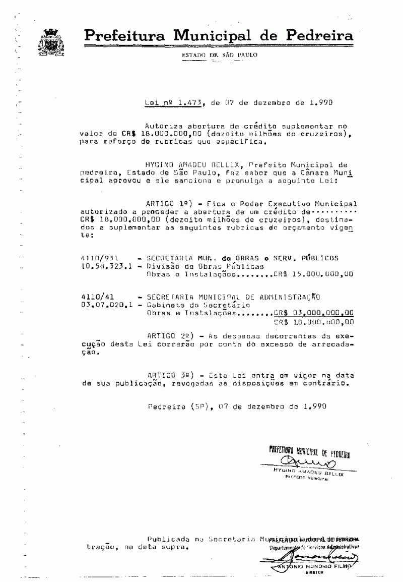 Lei Municipal - N° 1473 de 07/12/1990