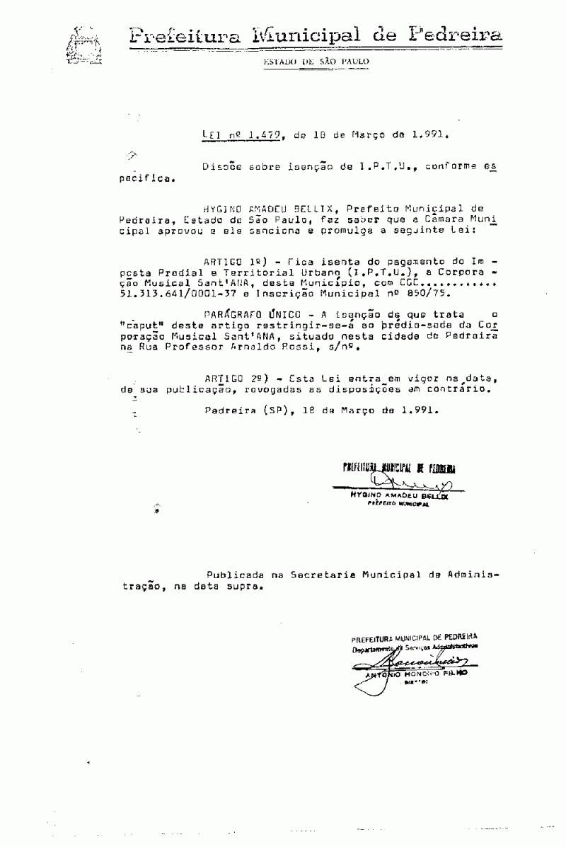 Lei Municipal - N° 1479 de 18/03/1991