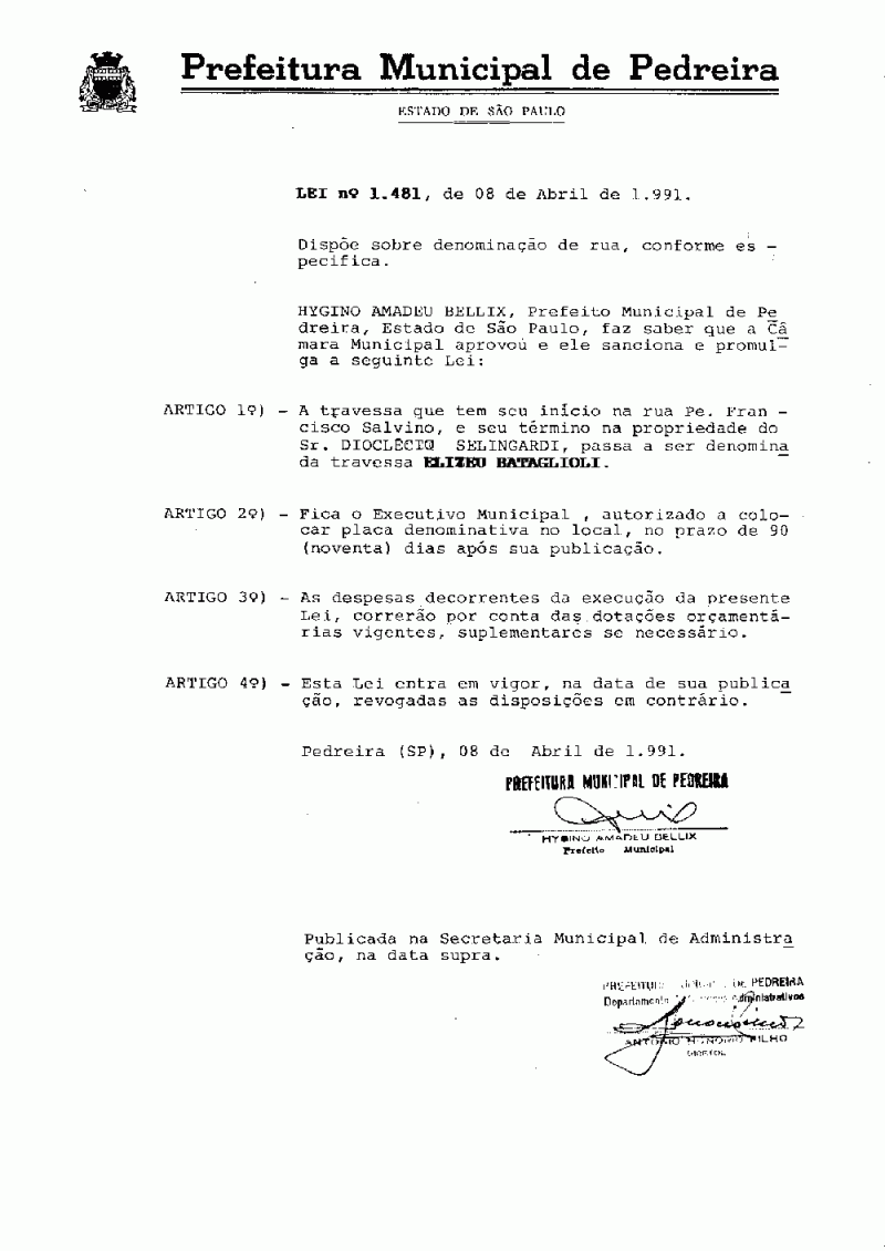 Ementa: Dispõe sobre denominação de rua, conforme especifica.