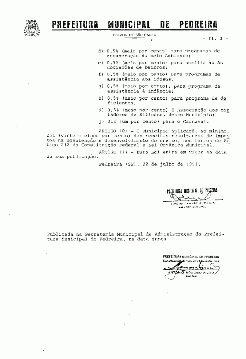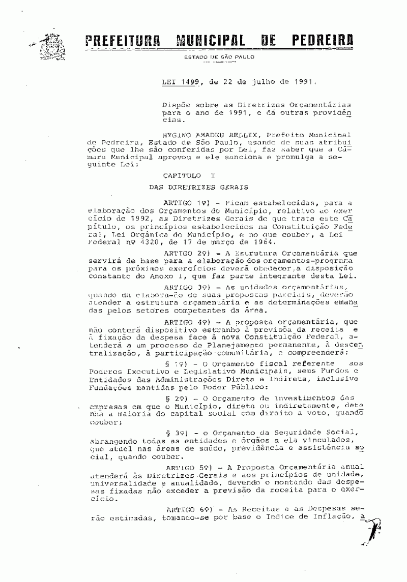 Lei Municipal - N° 1499 de 22/07/1991