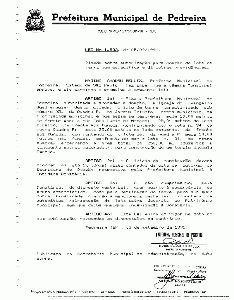 Ementa: Dispõe sobre autorização para doação de lote de terra que especifica e dá outras providências.