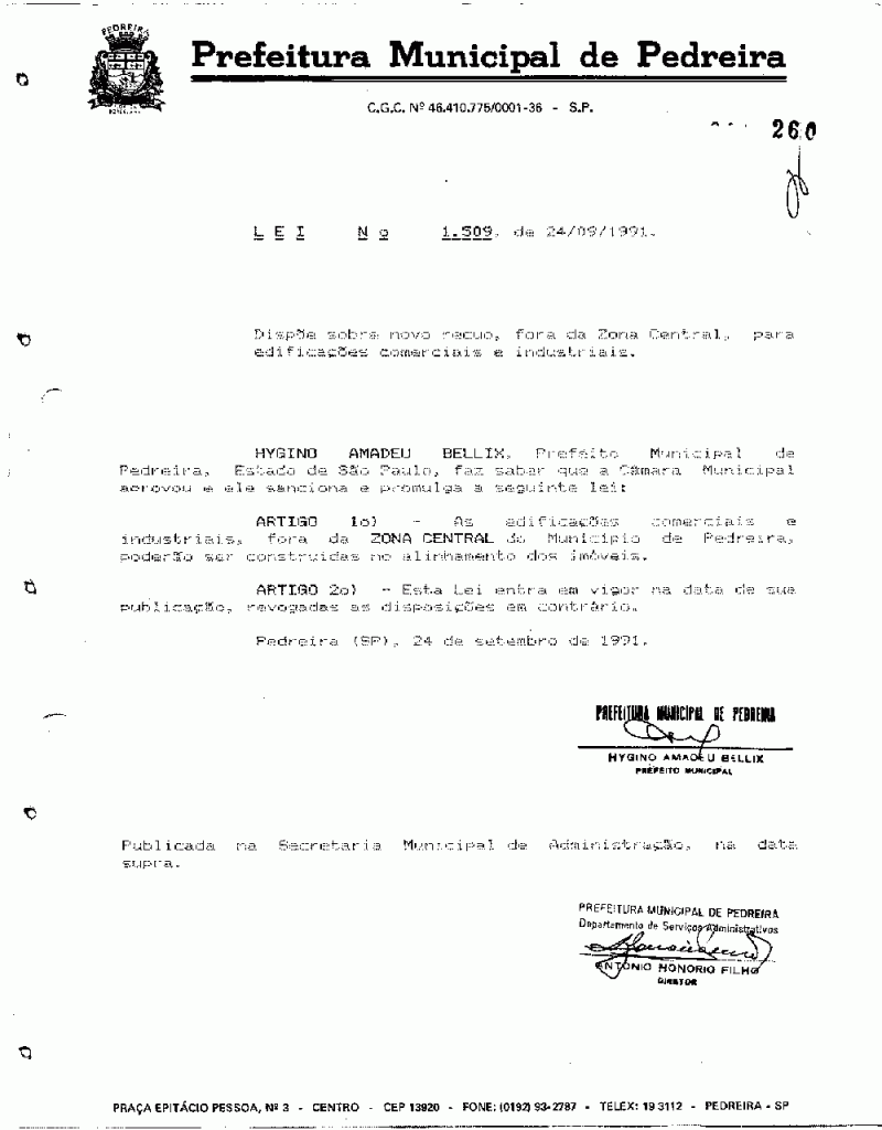 Lei Municipal - N° 1509 de 24/09/1991