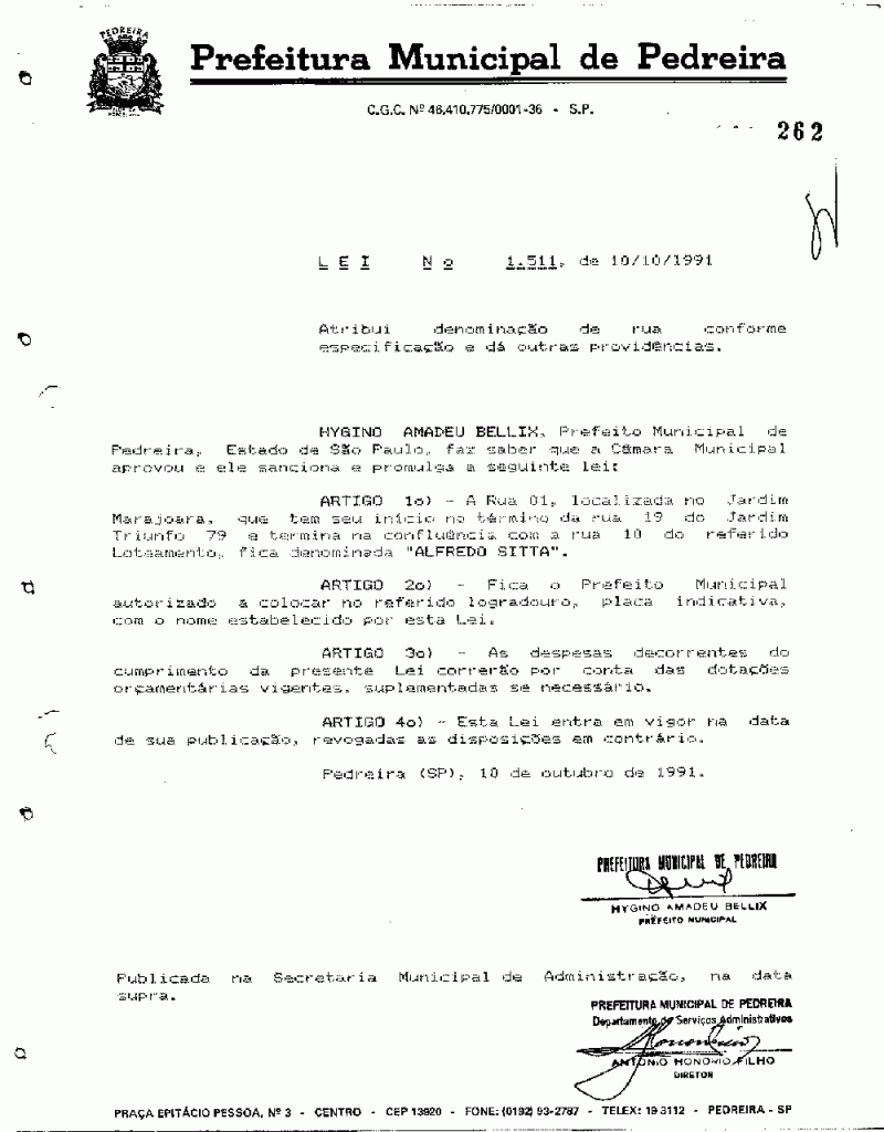 Ementa: Atribui denominação de rua conforme especificação e dá outras providências.