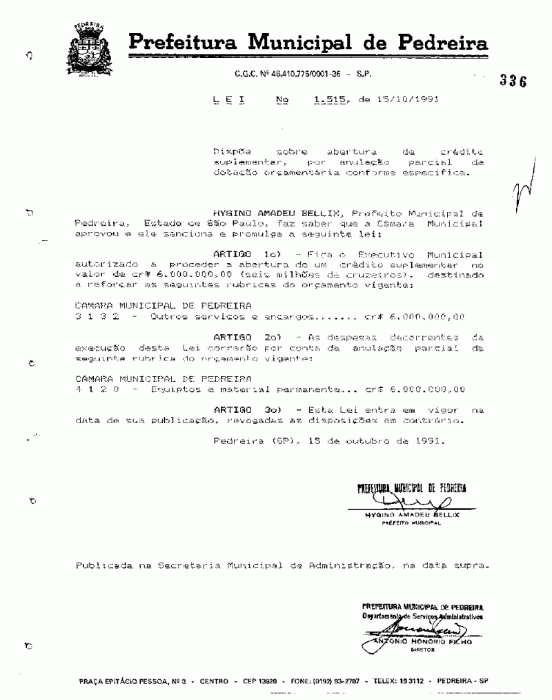 Ementa: Dispõe sobre abertura de crédito suplementar, por anulação parcial de dotação orçamentária conforme especifica.