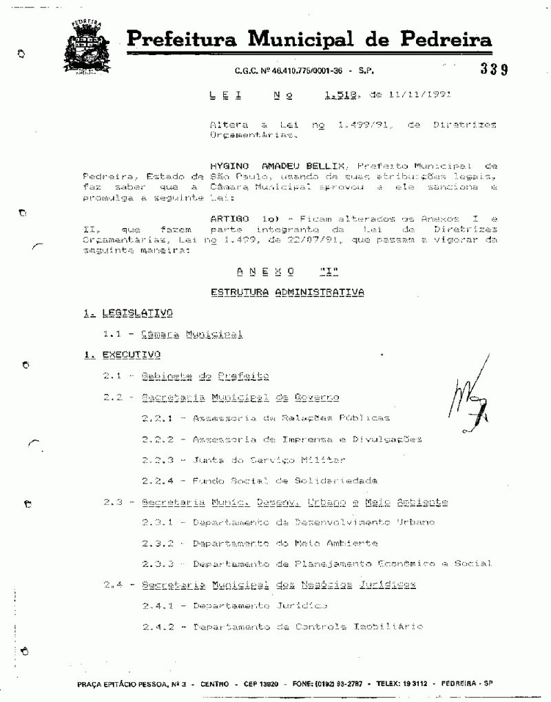 Lei Municipal - N° 1518 de 11/11/1991