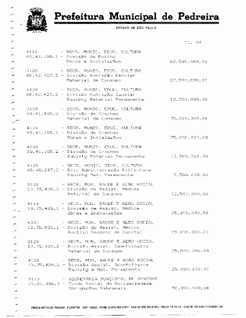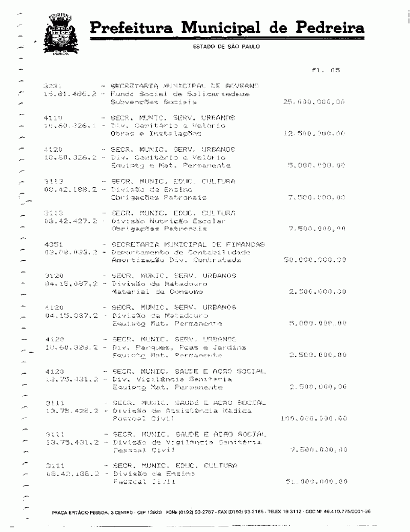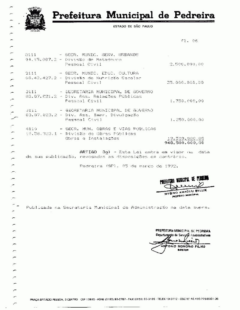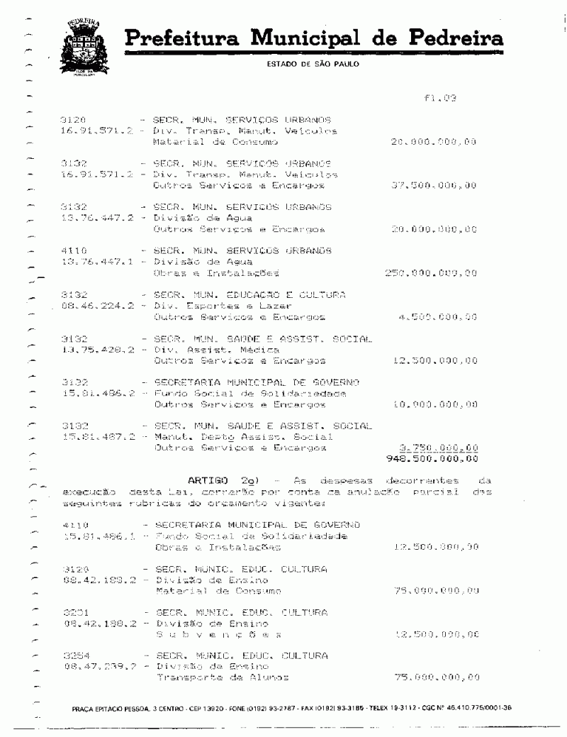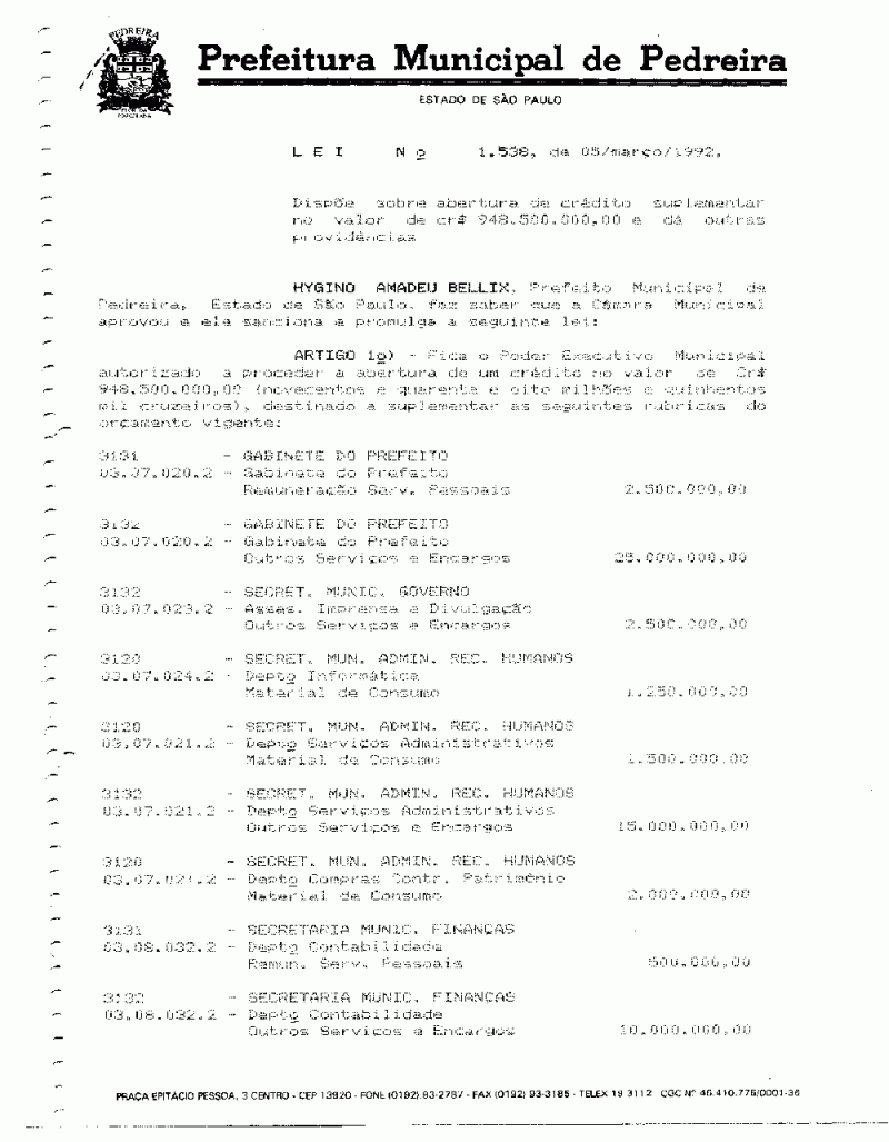 Ementa: Dispõe sobre abertura de crédito suplementar no valor de Cr$ 948.500.000,00 e dá outras providências.