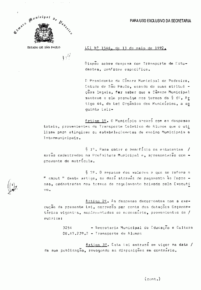Lei Municipal - N° 1546 de 13/05/1992
