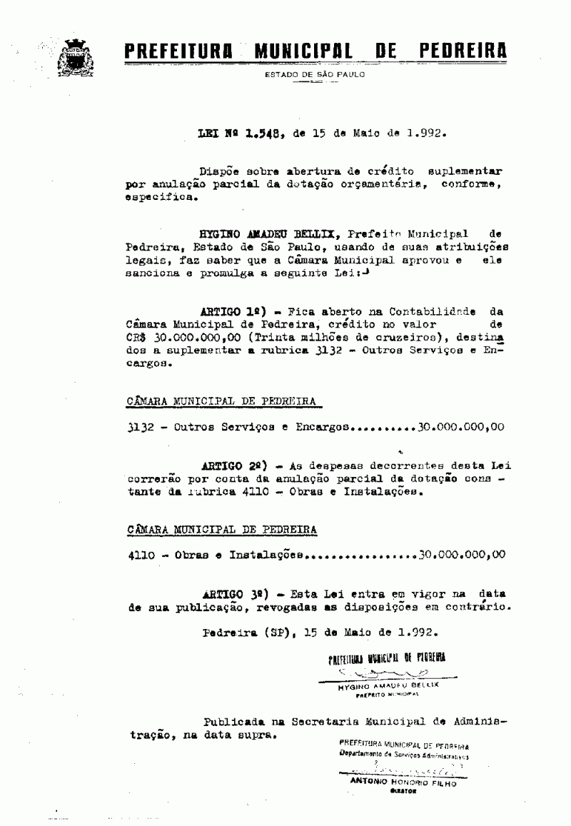 Ementa: Dispõe sobre abertura de crédito suplementar por anulação parcial da dotação orçamentária, conforme especifica.