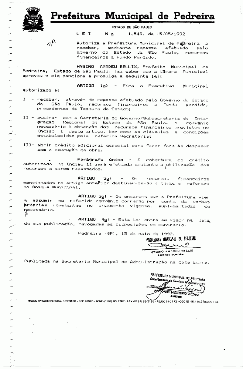 Lei Municipal - N° 1549 de 15/05/1992