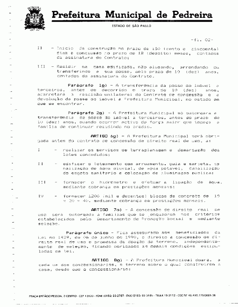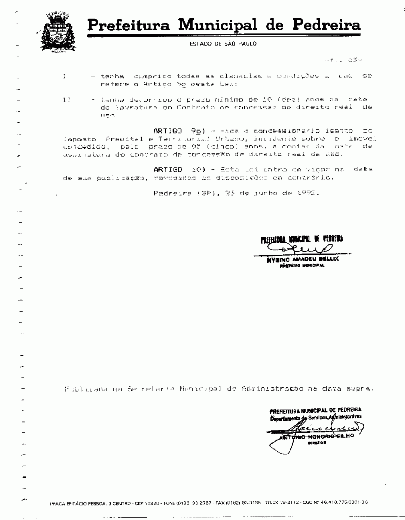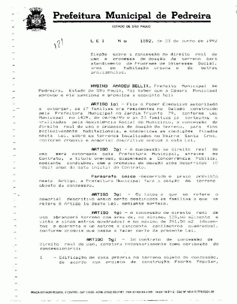 Lei Municipal - N° 1552 de 23/06/1992