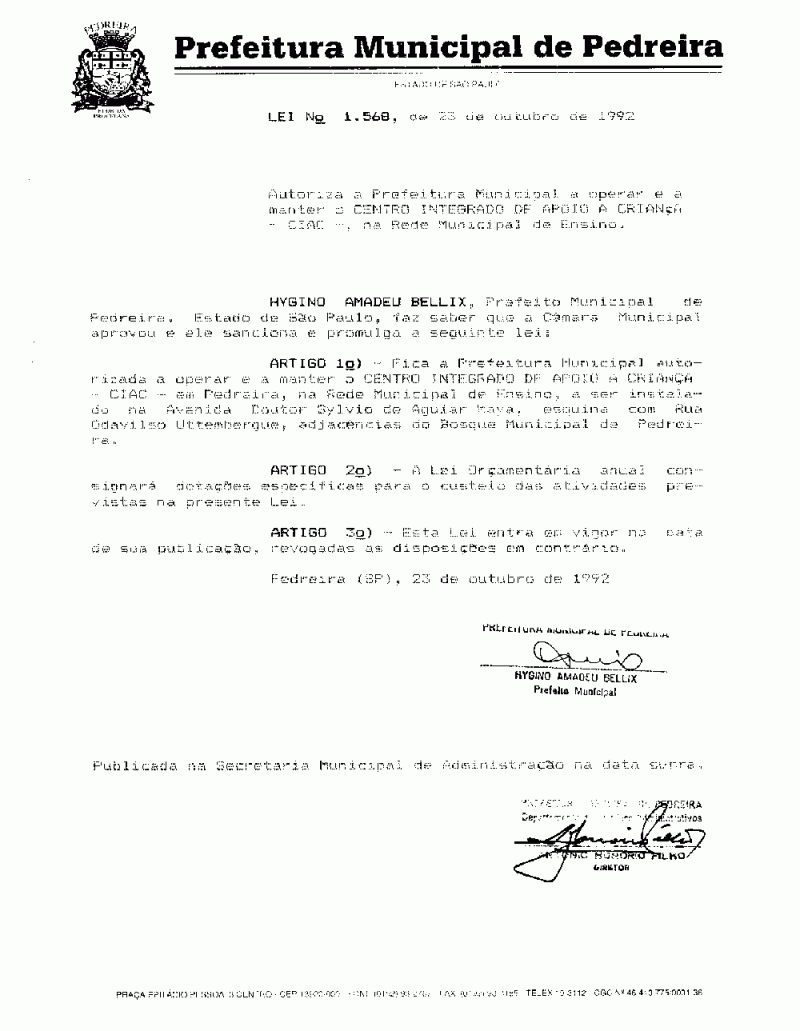 Lei Municipal - N° 1568 de 23/10/1992