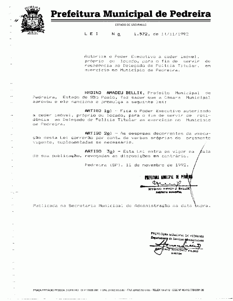 Lei Municipal - N° 1572 de 11/11/1992