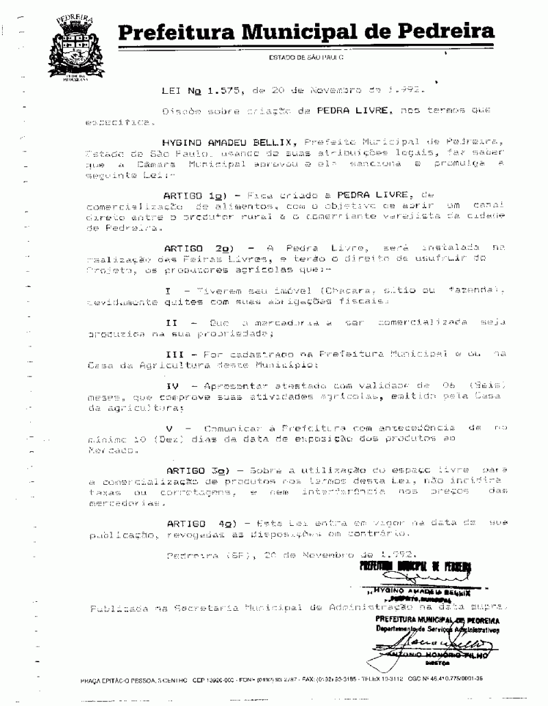 Lei Municipal - N° 1575 de 20/11/1992