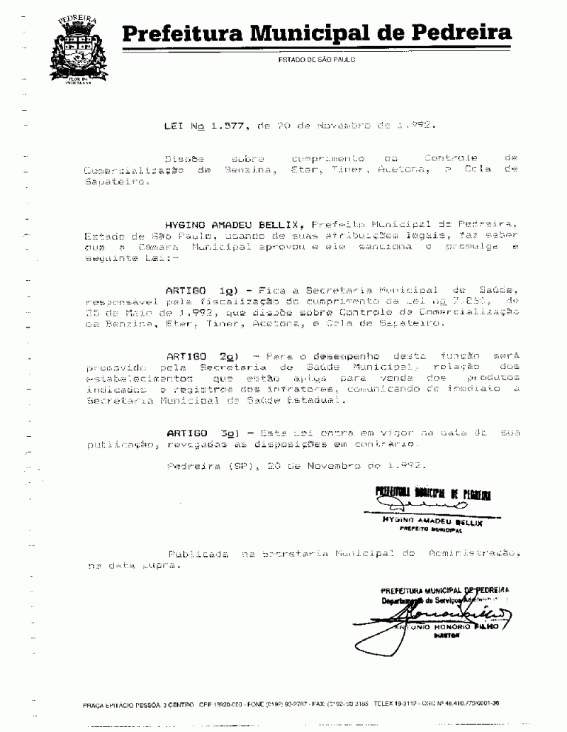 Ementa: Dispõe sobre cumprimento do Controle de Comercialização de benzina, éter, tiner, acetona e cola de sapateiro.
