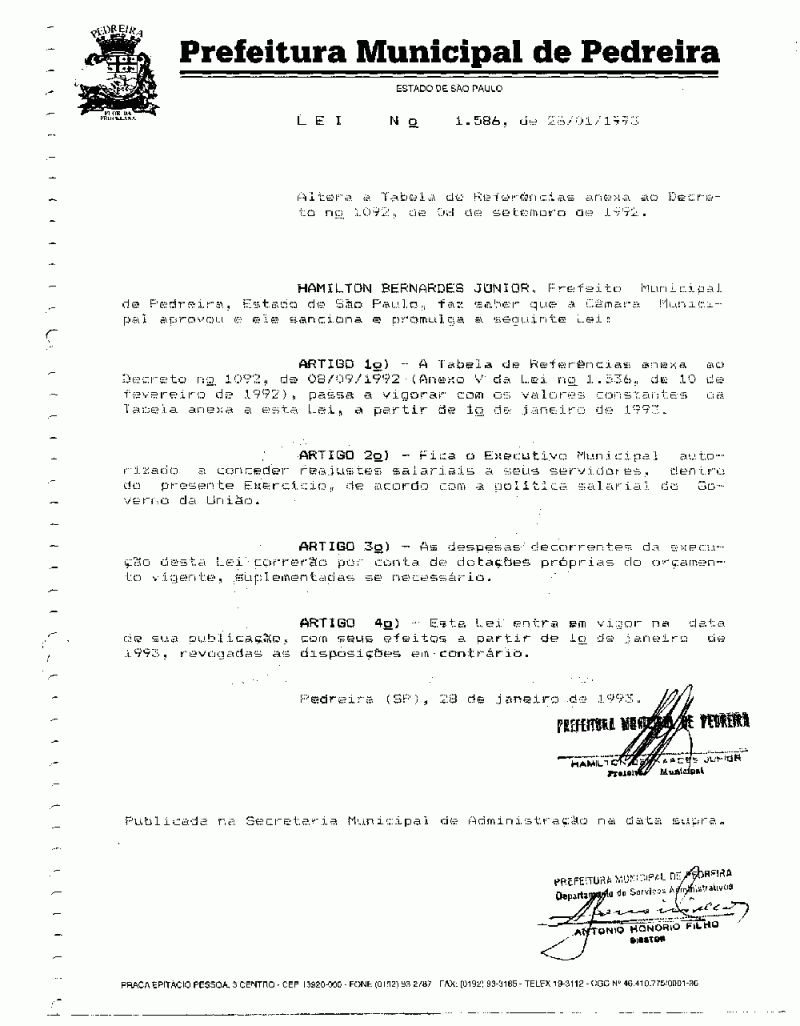 Lei Municipal - N° 1586 de 28/01/1993