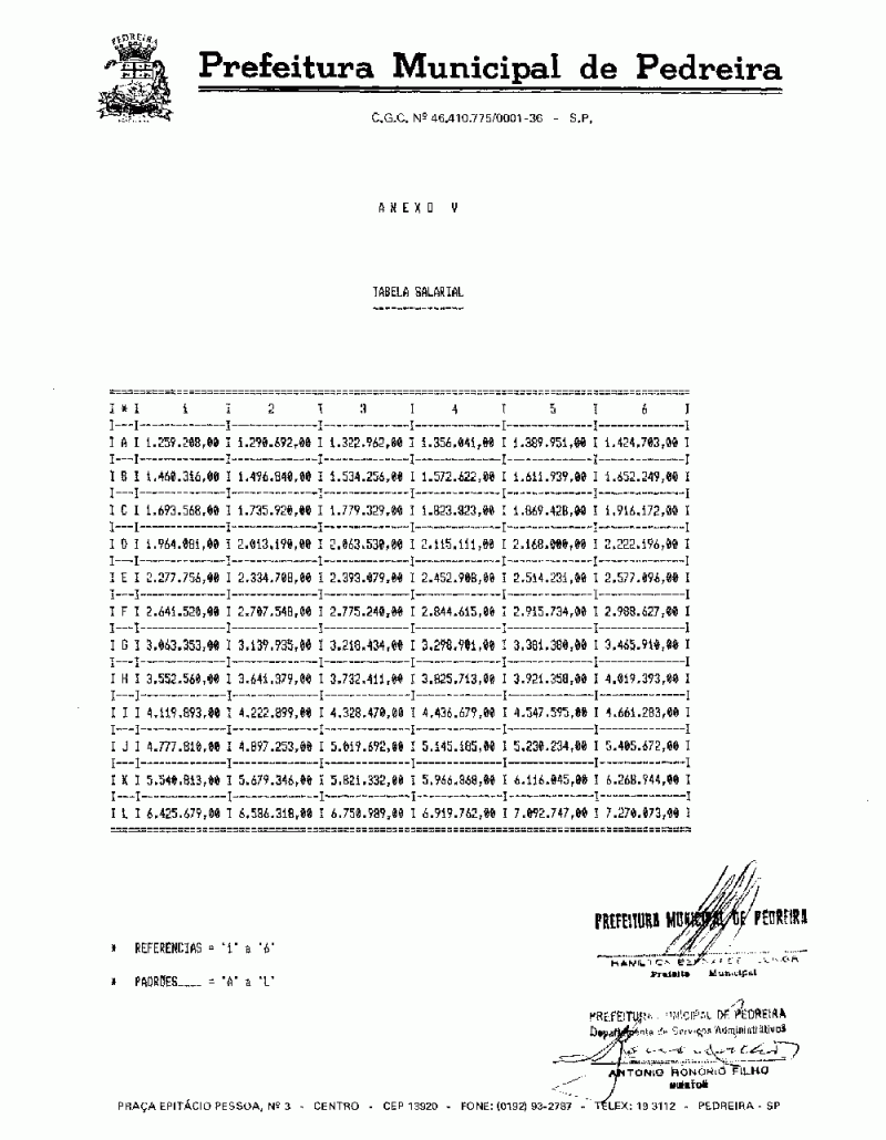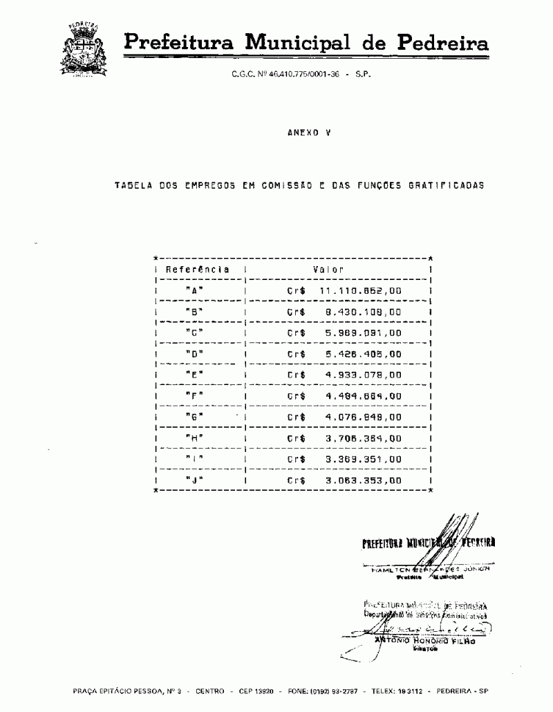 Ementa: Altera a tabela de referências anexa do decreto nº 1092, de 08 de setembro de 1992.