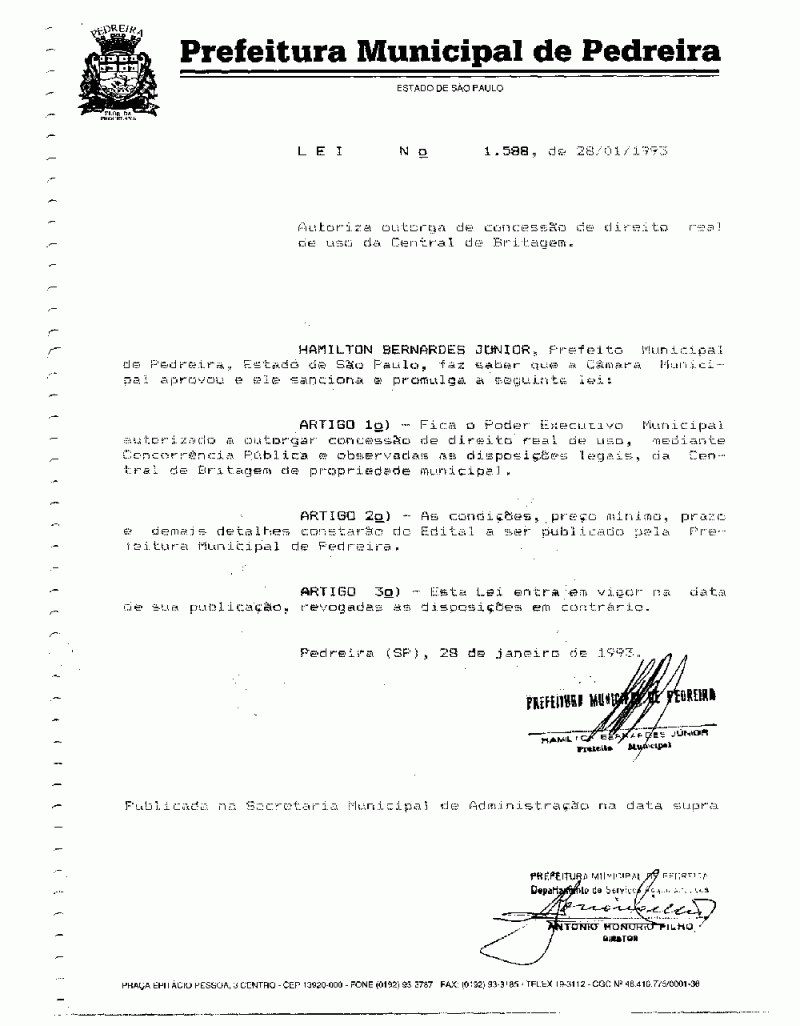 Lei Municipal - N° 1588 de 28/01/1993