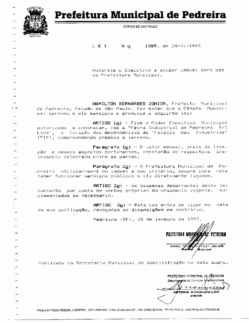 Lei Municipal - N° 1589 de 28/01/1993