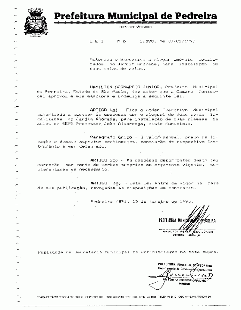 Lei Municipal - N° 1590 de 28/01/1993