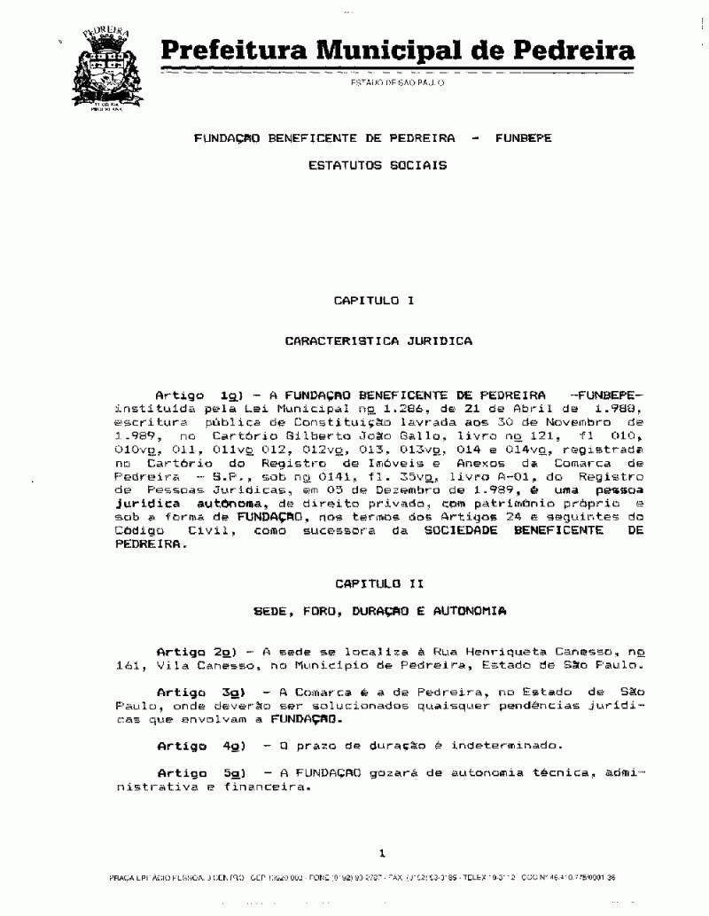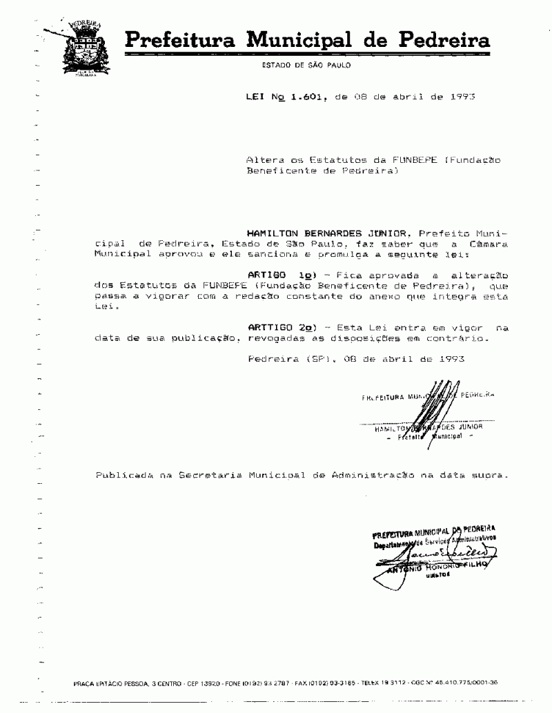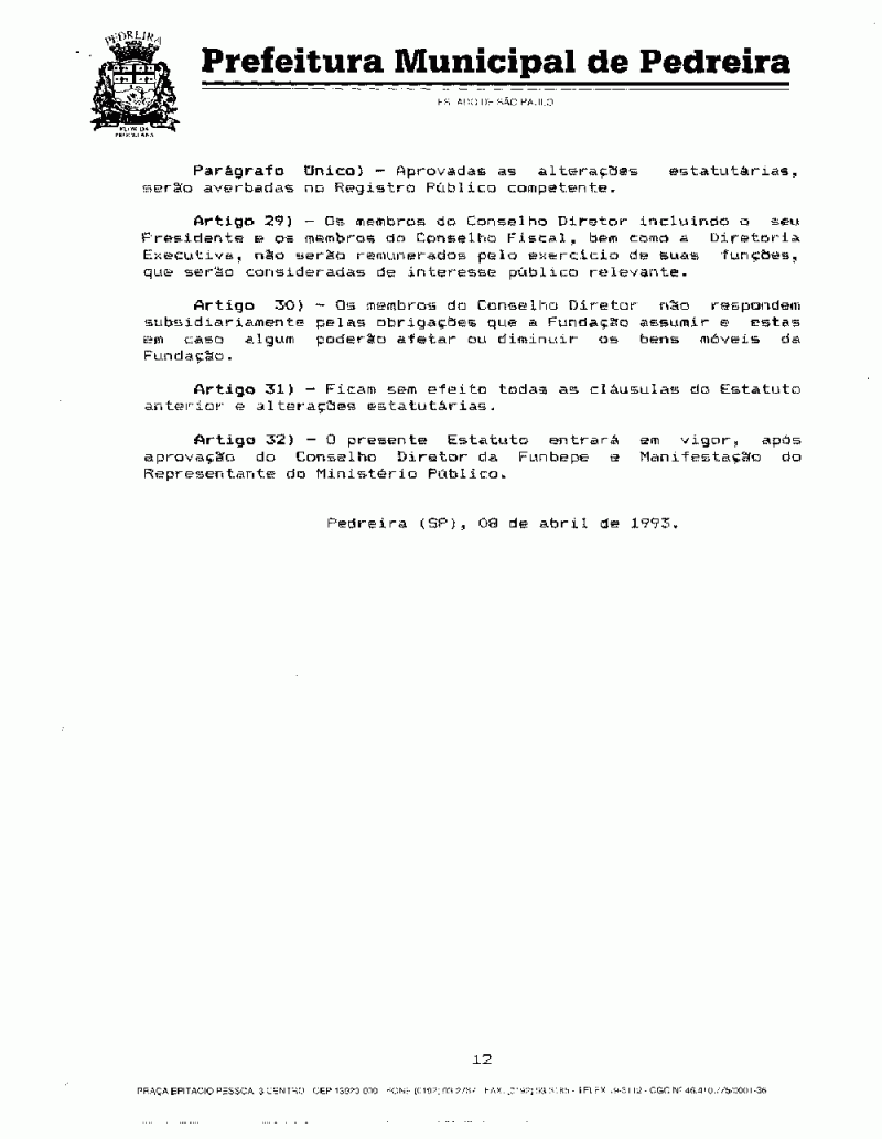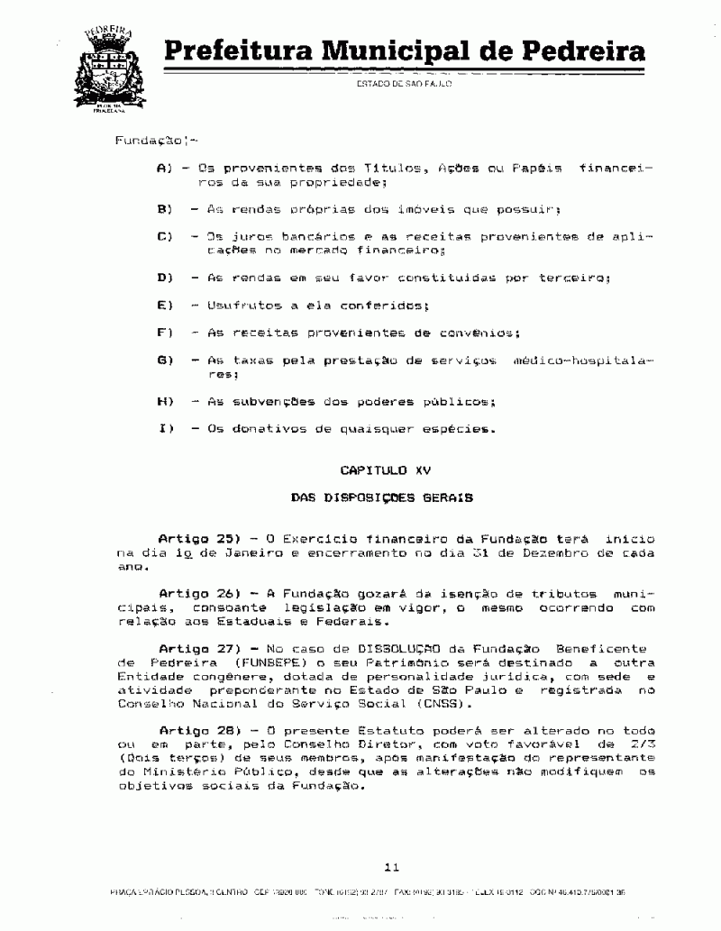 Ementa: Altera os Estatutos da FUNBEPE (Fundação Beneficente de Pedreira).