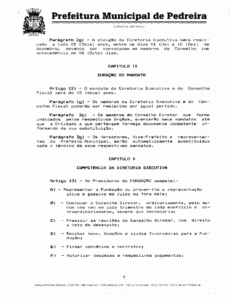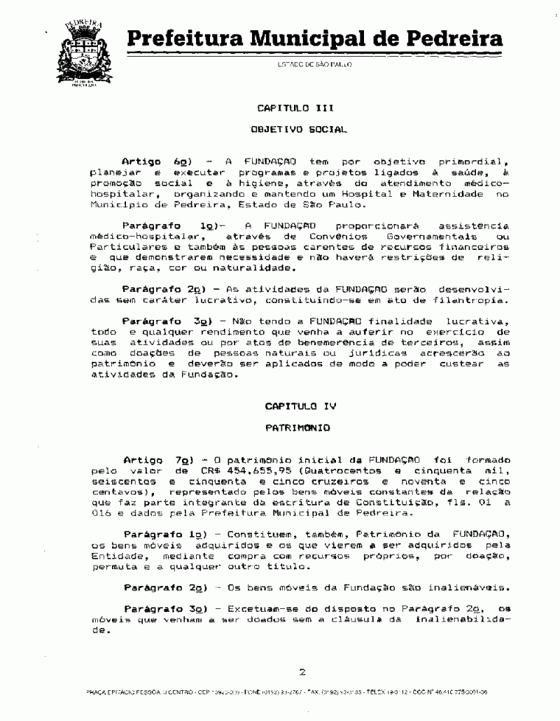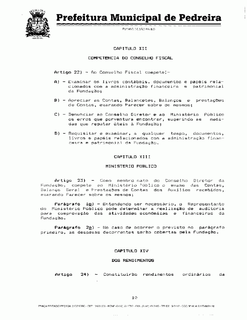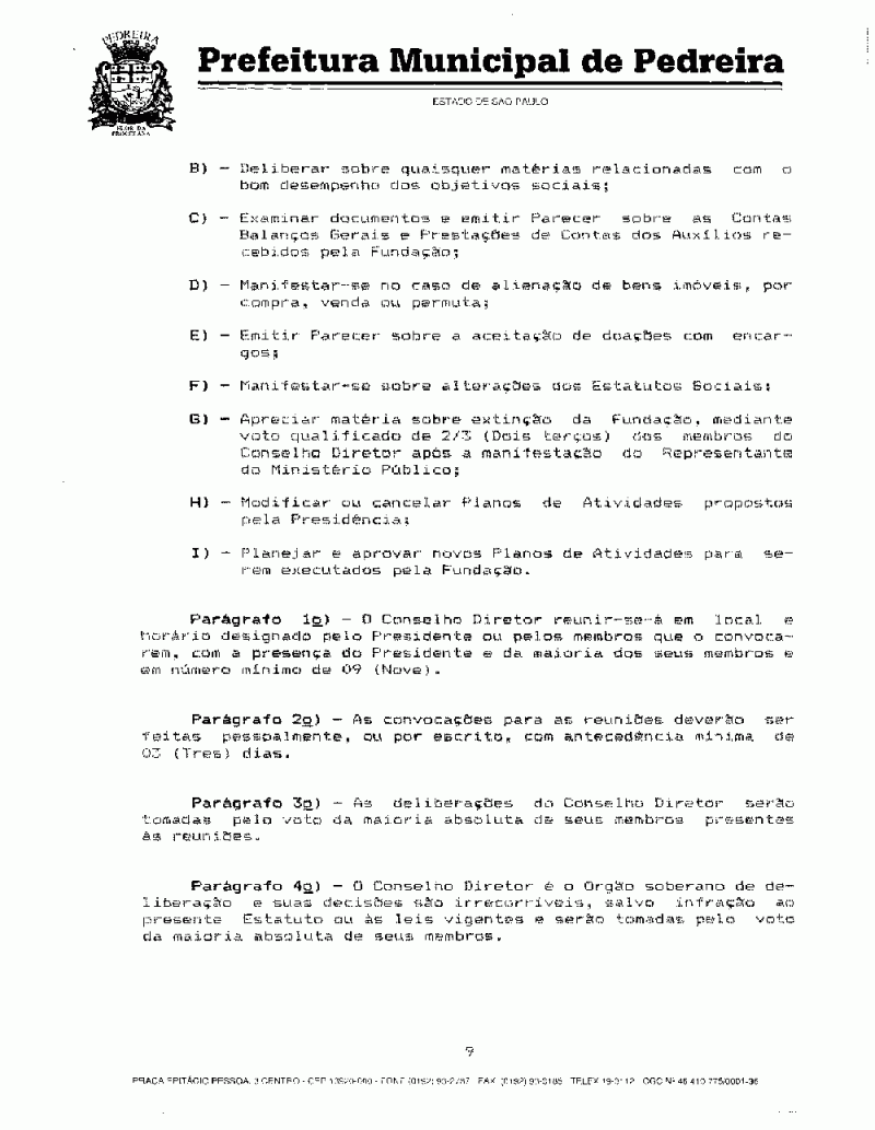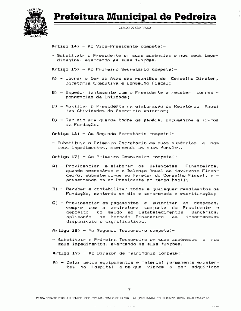 Ementa: Altera os Estatutos da FUNBEPE (Fundação Beneficente de Pedreira).