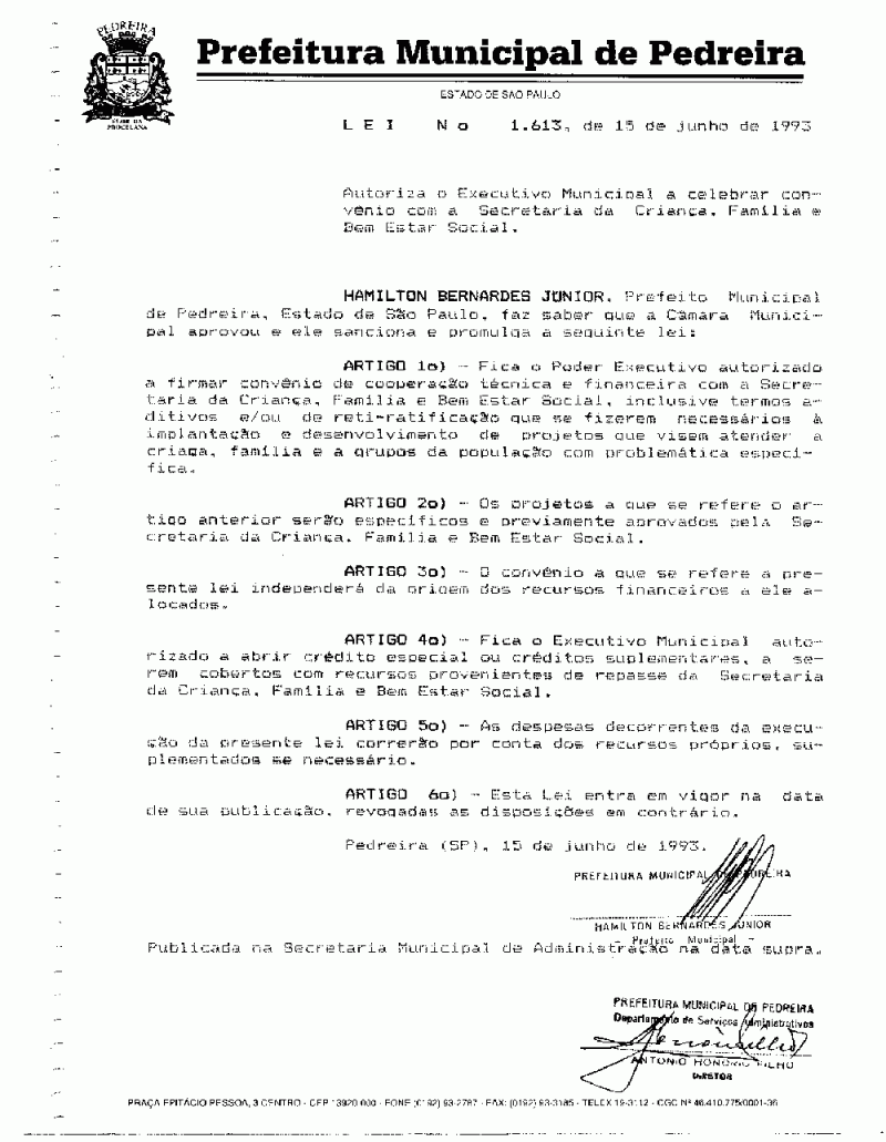 Ementa: Autoriza o Executivo Municipal a celebrar convênio com a Secretaria da Criança, Família e Bem Estar Social.