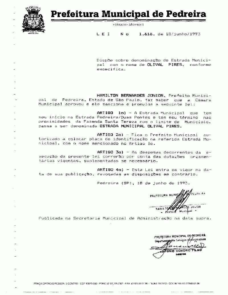 Lei Municipal - N° 1616 de 18/06/1993