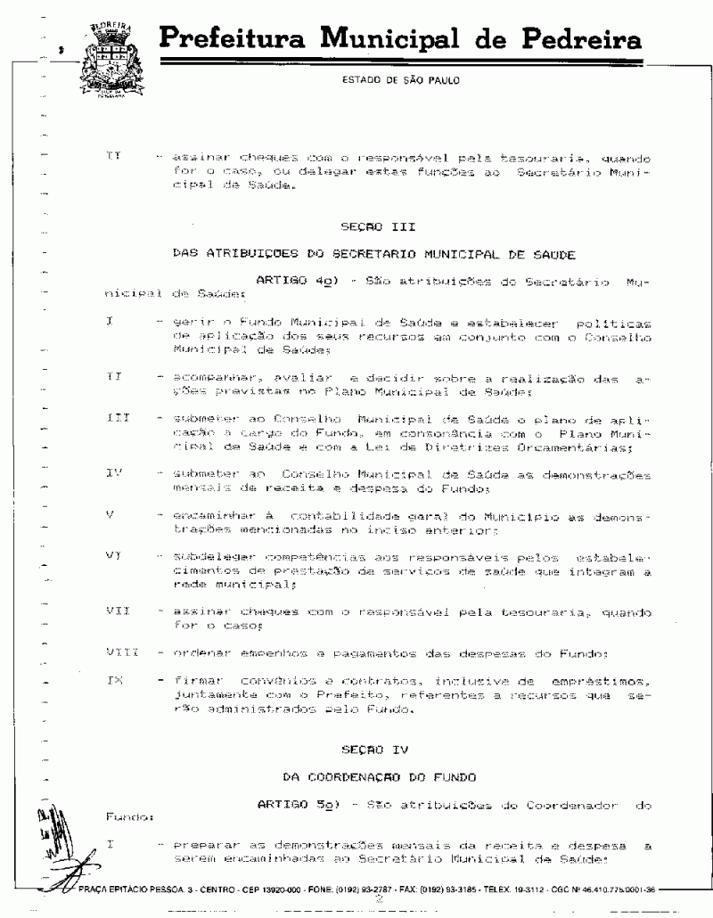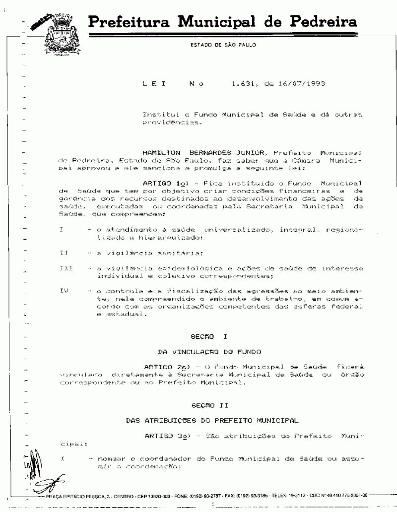 Ementa: Institui o Fundo Municipal de Saúde e dá outras providências.
