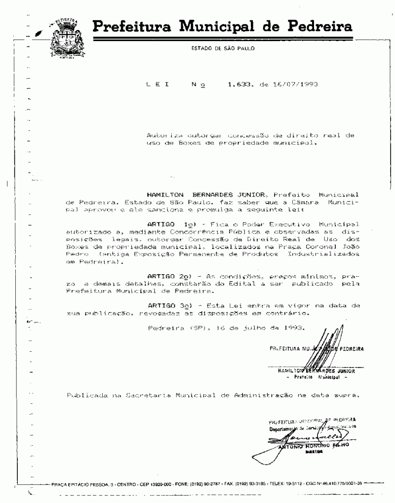 Ementa: Autoriza outorgar concessão de direito real de uso de boxes de propriedade municipal.