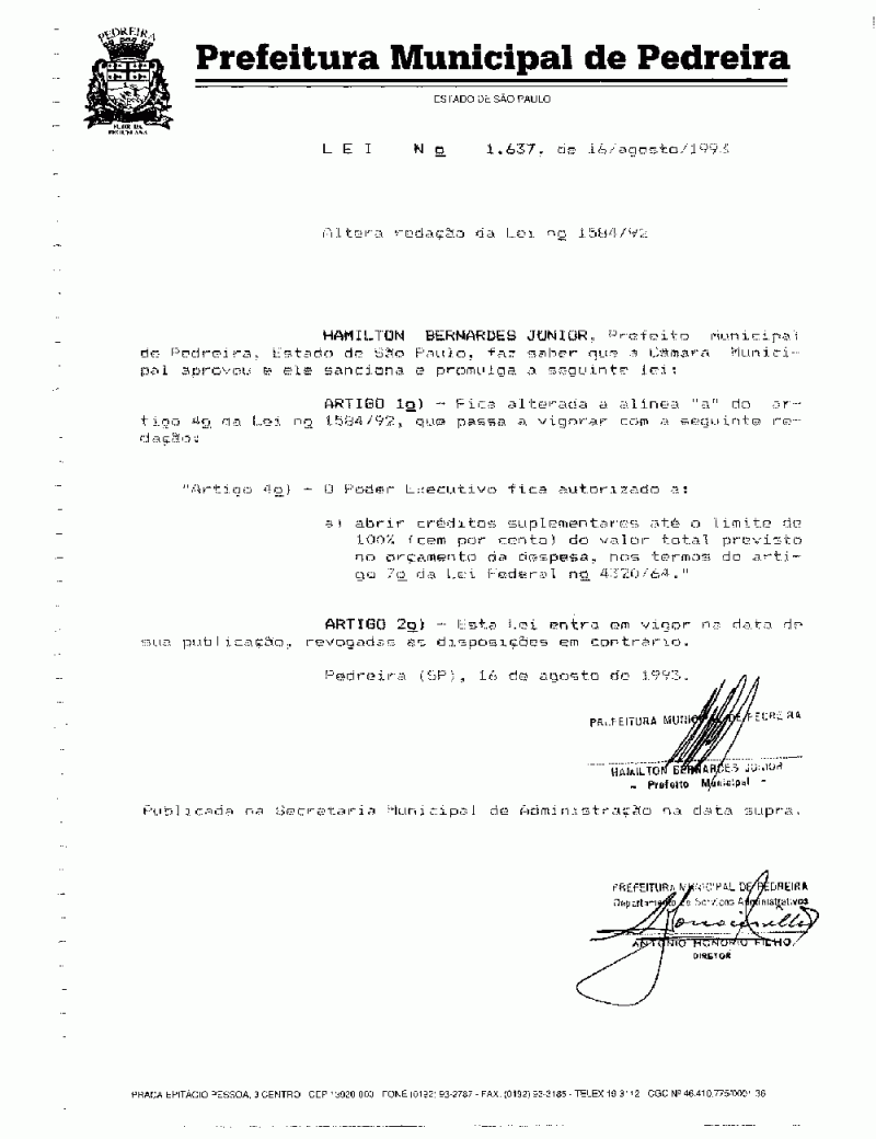 Lei Municipal - N° 1637 de 16/08/1993