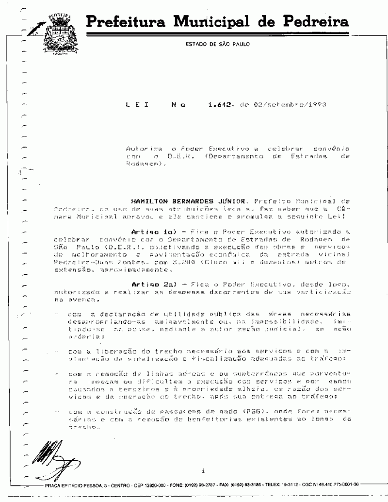 Ementa: Autoriza o Poder Executivo a celebrar convênio com o D.E.R. (Departamento de Estradas de Rodagem).