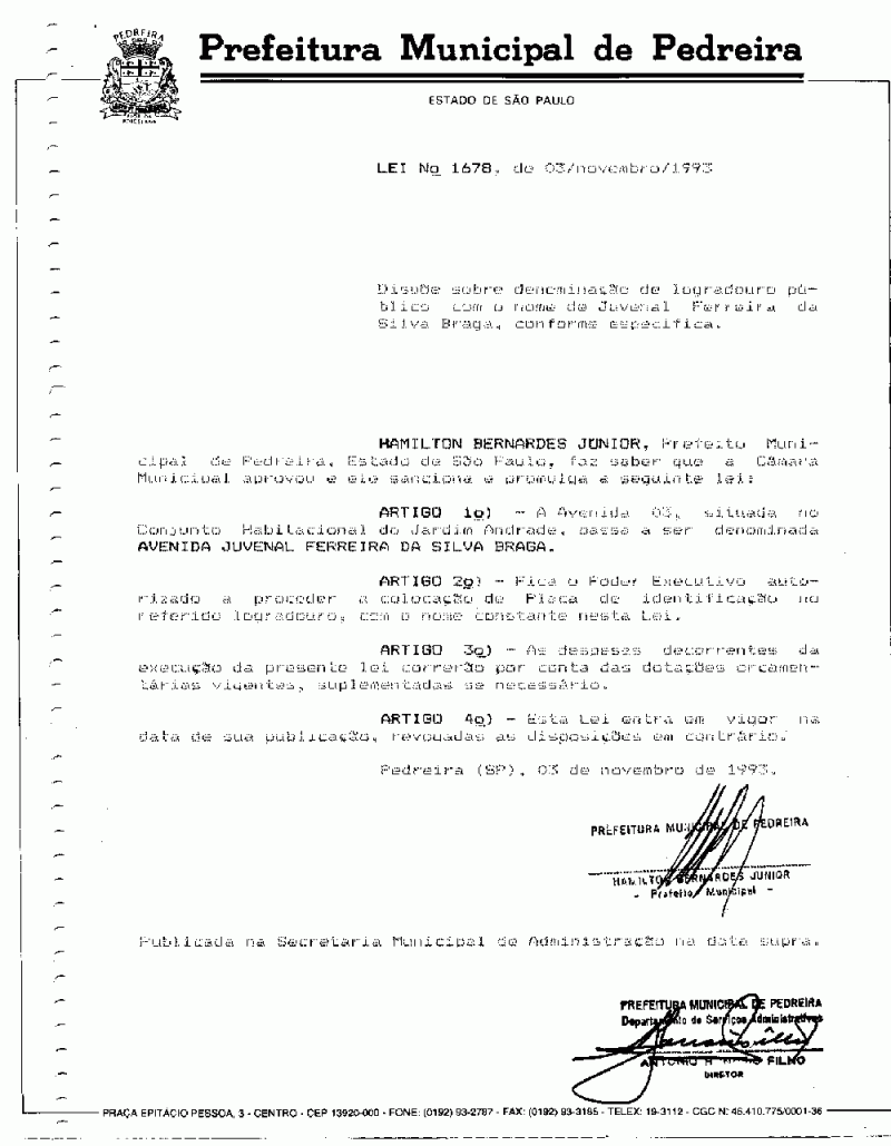 Lei Municipal - N° 1678 de 03/11/1993