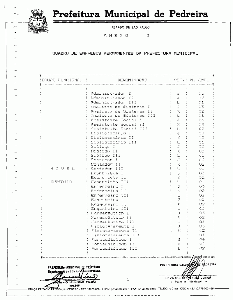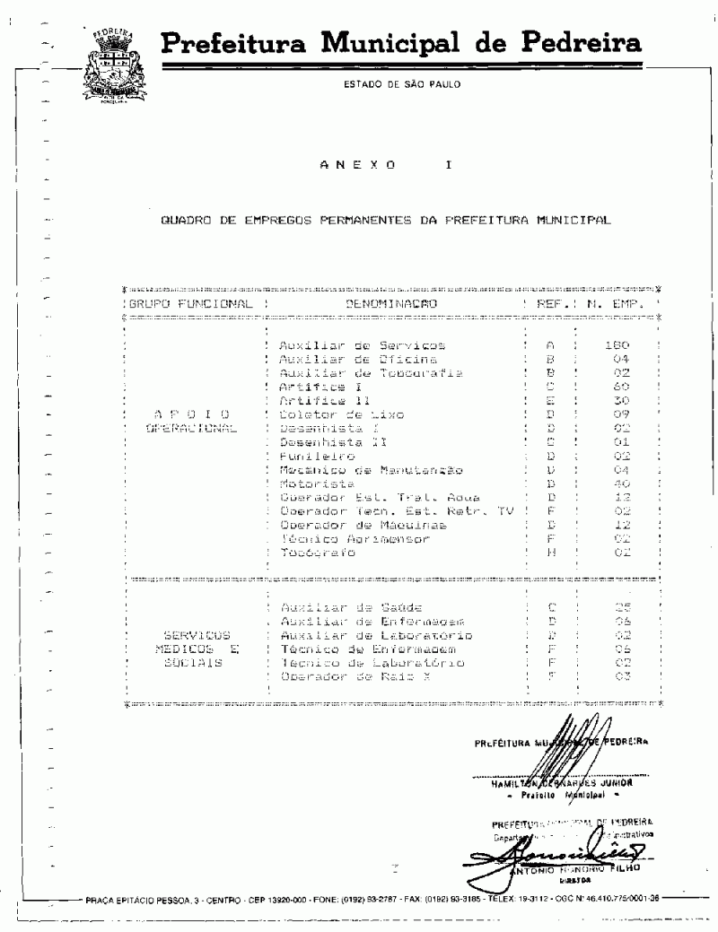 Ementa: Altera o anexo I da Lei 1486, de 13/05/1991.