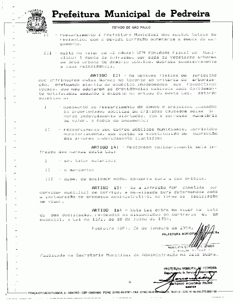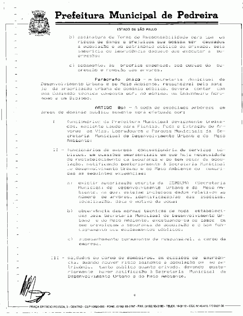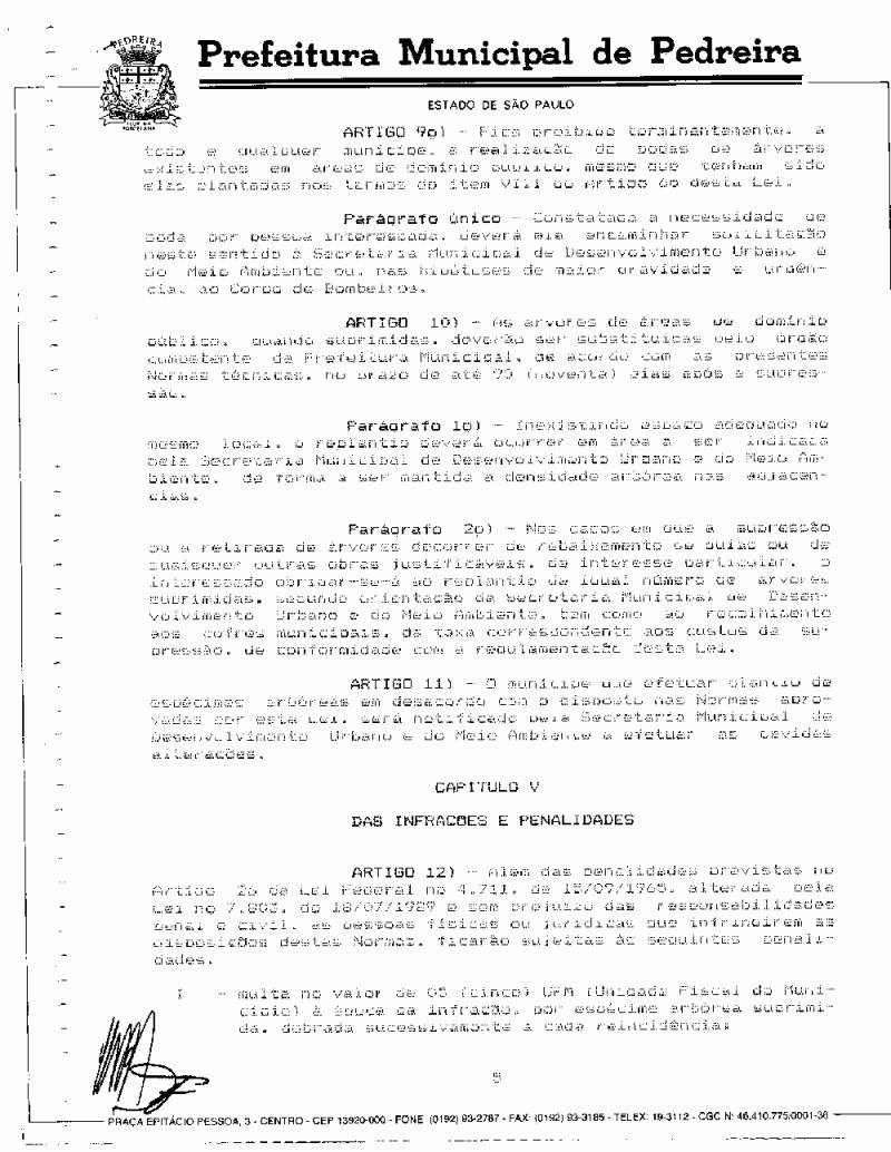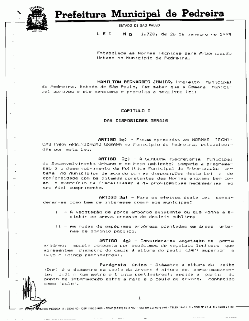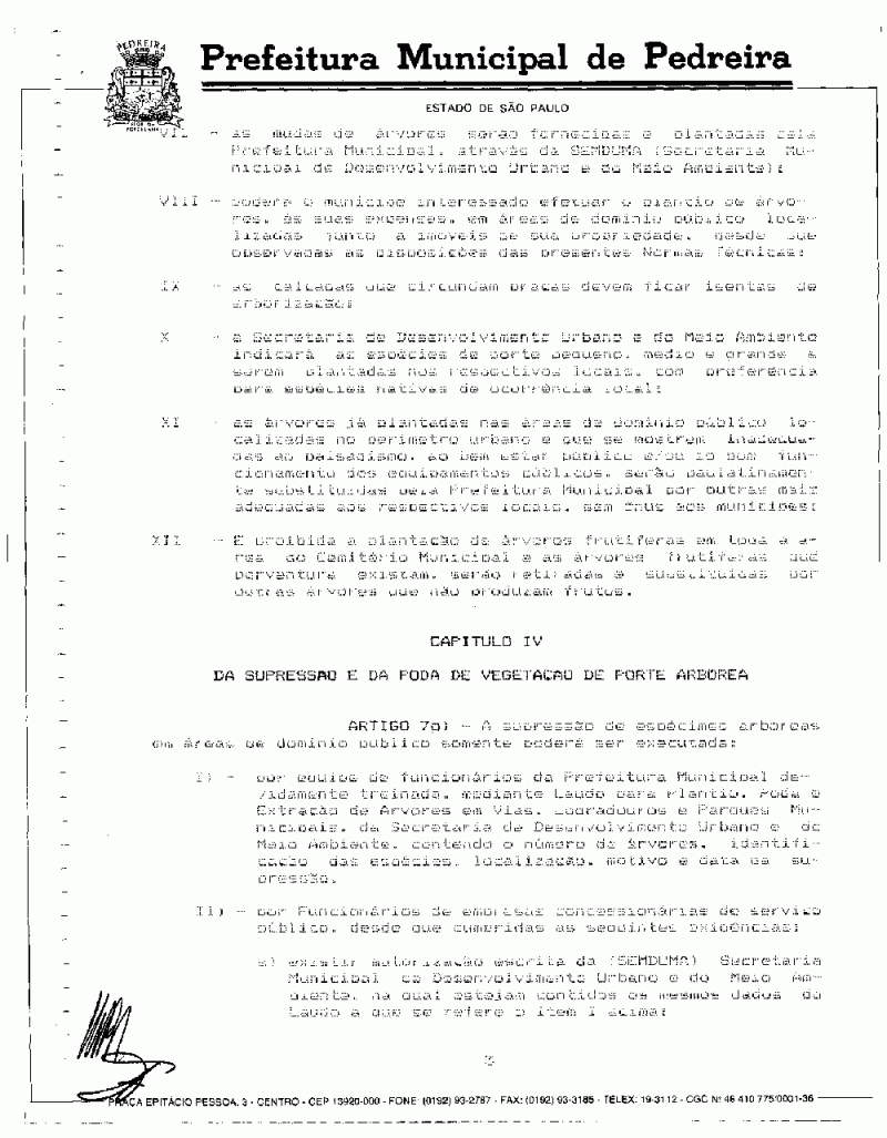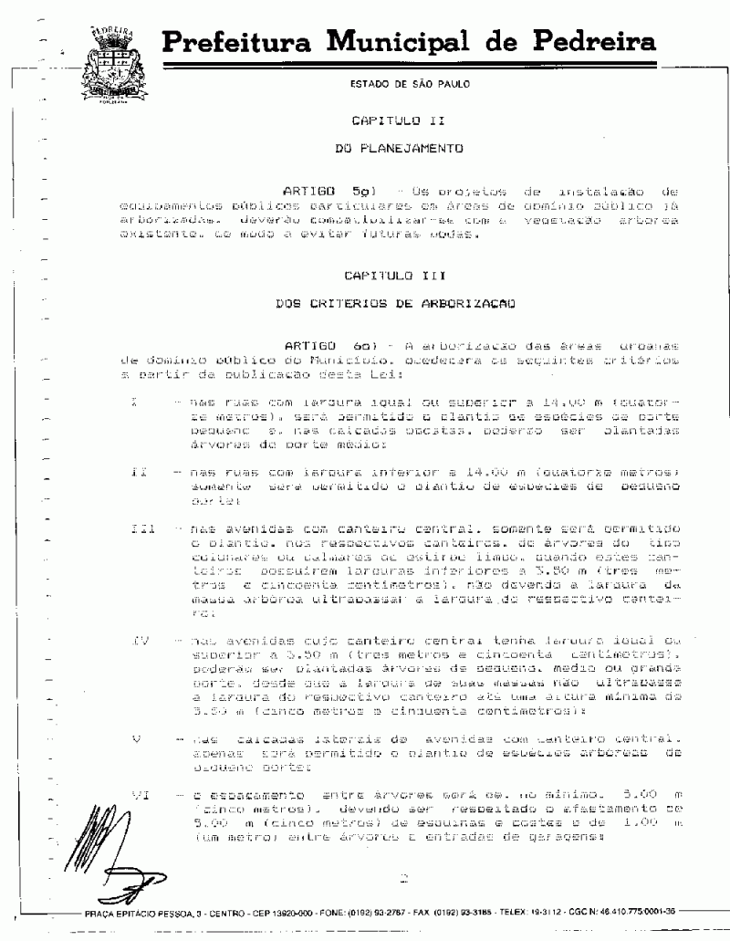 Ementa: Estabelece as Normas Técnicas para Arborização Urbana no Município de Pedreira.