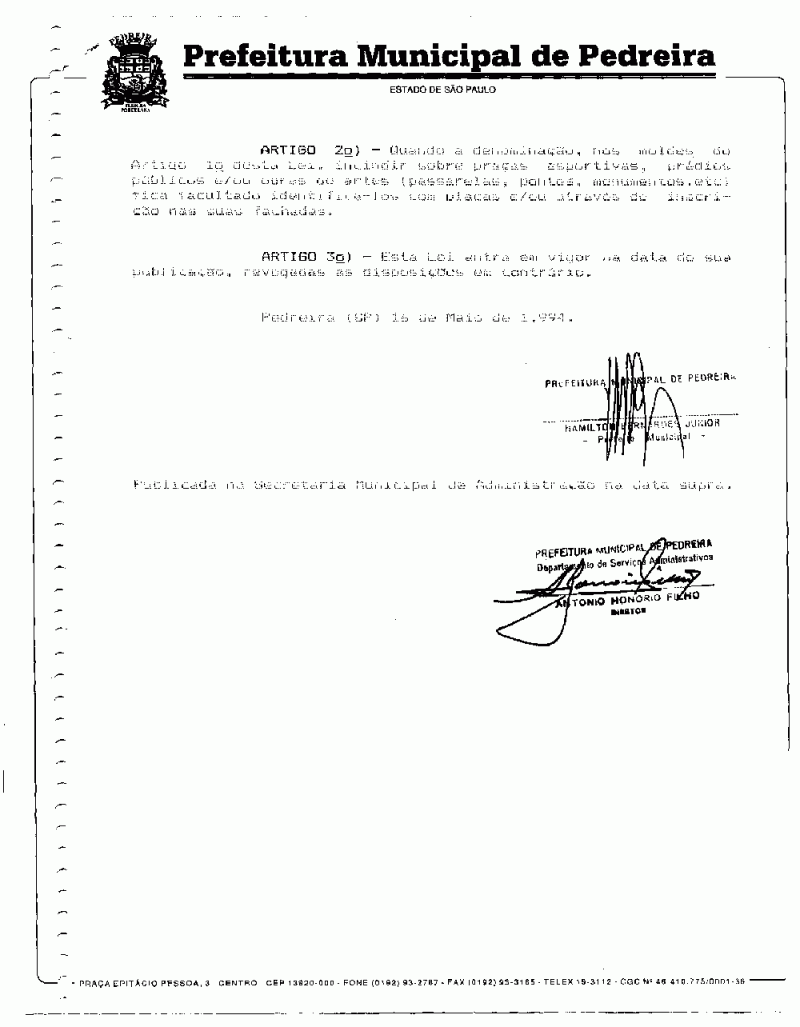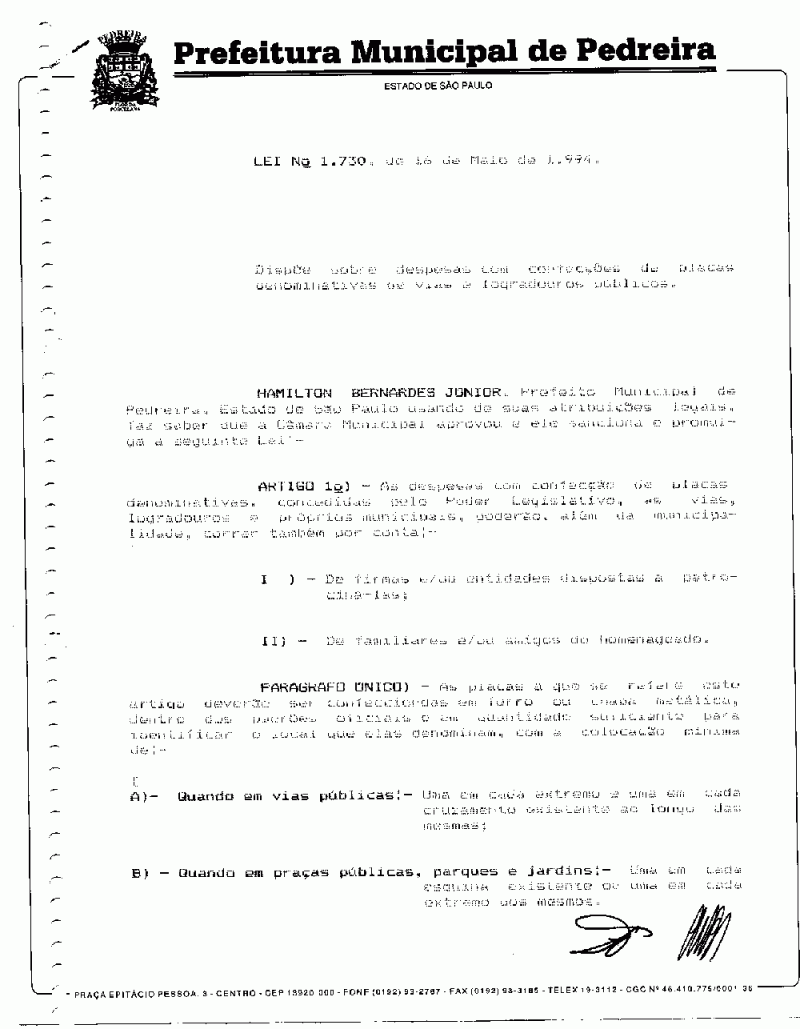 Lei Municipal - N° 1730 de 16/05/1994