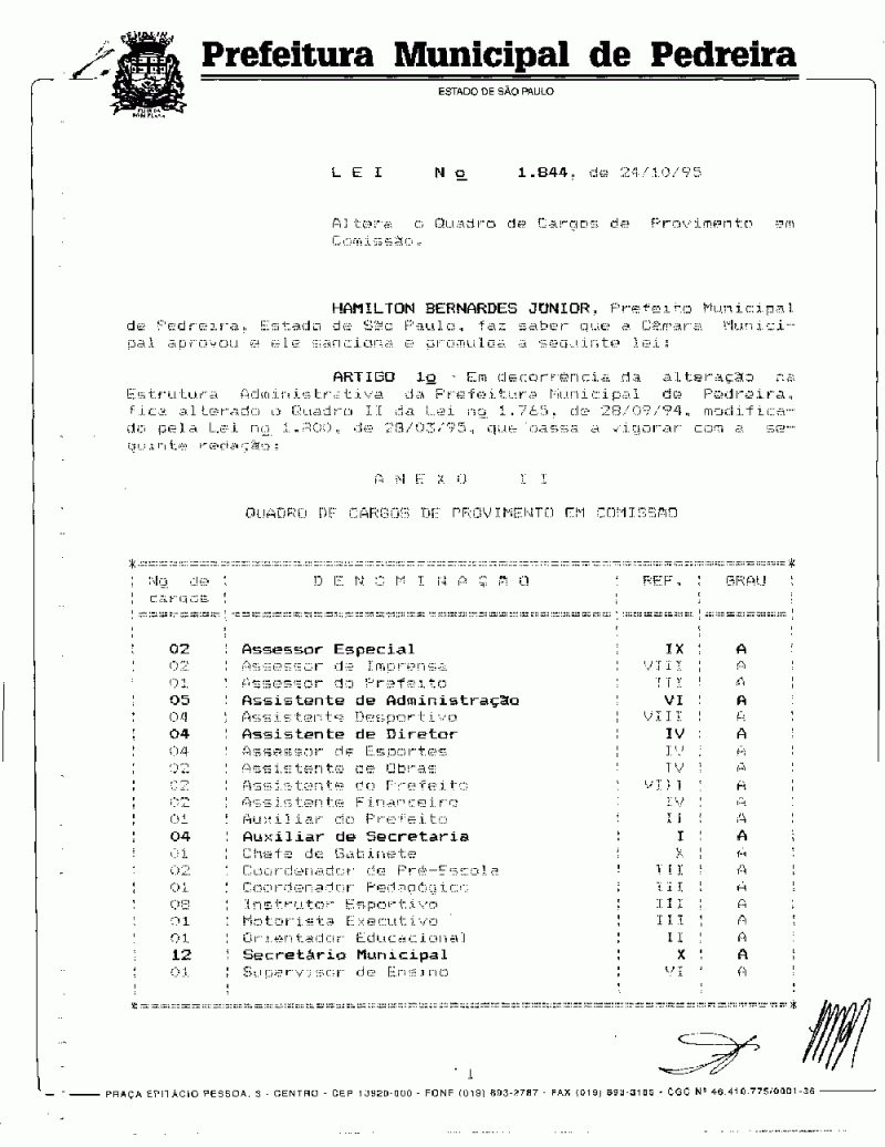 Lei Municipal - N° 1844 de 24/10/1995