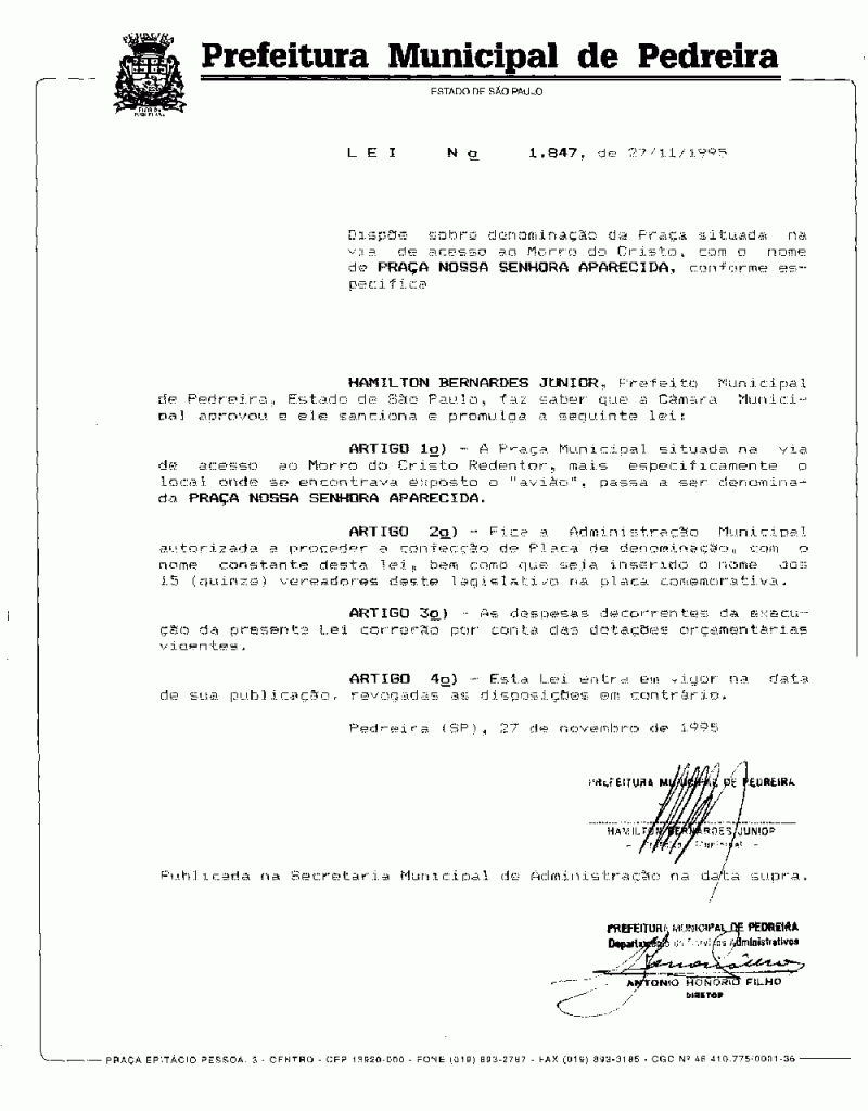 Lei Municipal - N° 1847 de 27/11/1995