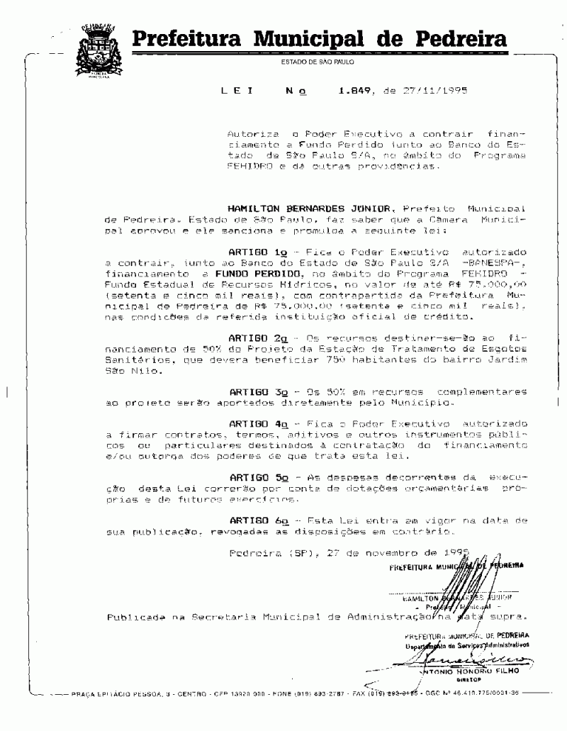 Lei Municipal - N° 1849 de 27/11/1995