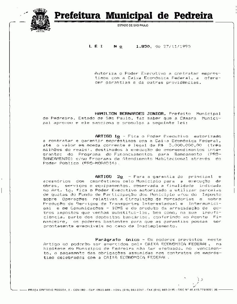 Lei Municipal - N° 1850 de 27/11/1995