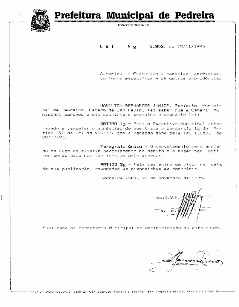 Ementa: Autoriza o Executivo a cancelar acréscimo, conforme especifica e dá outras providências.