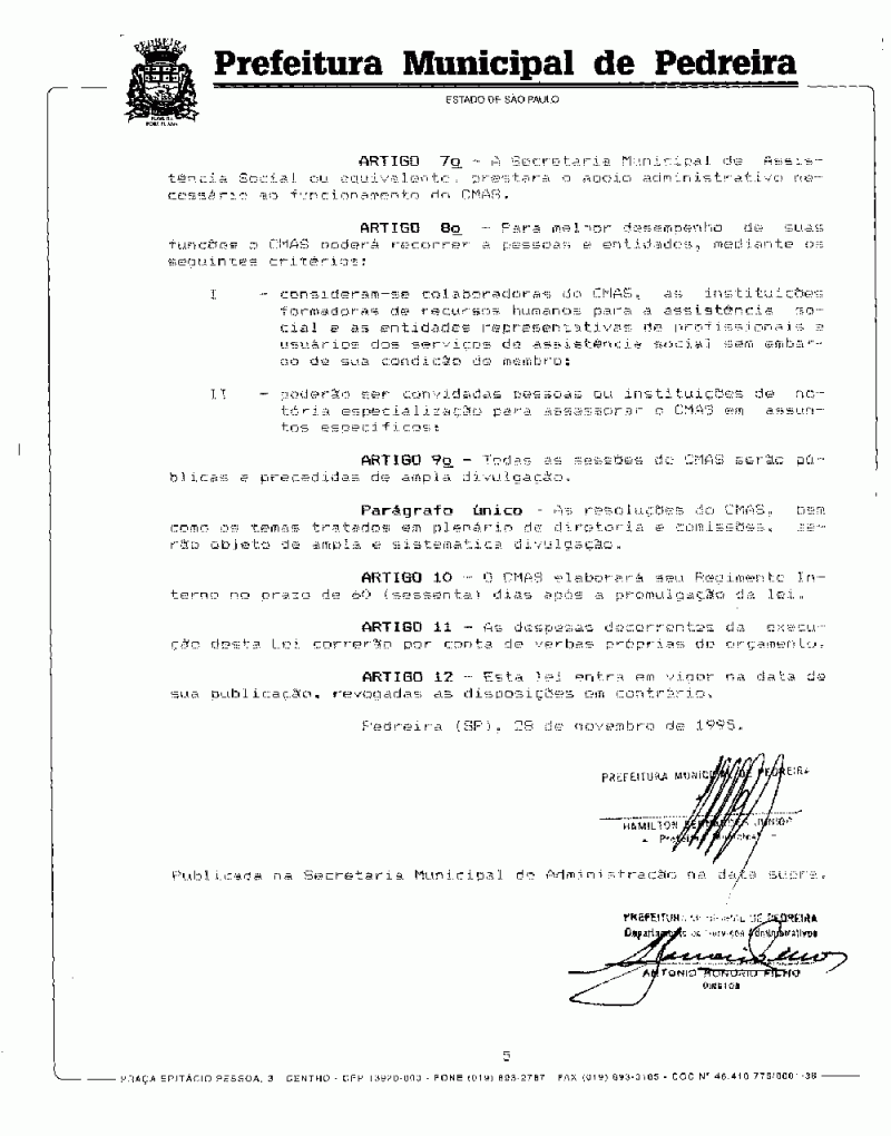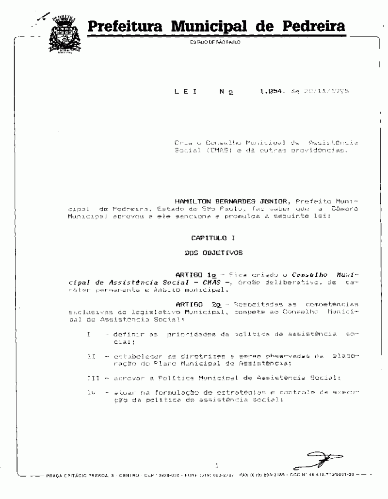 Lei Municipal - N° 1854 de 28/11/1995