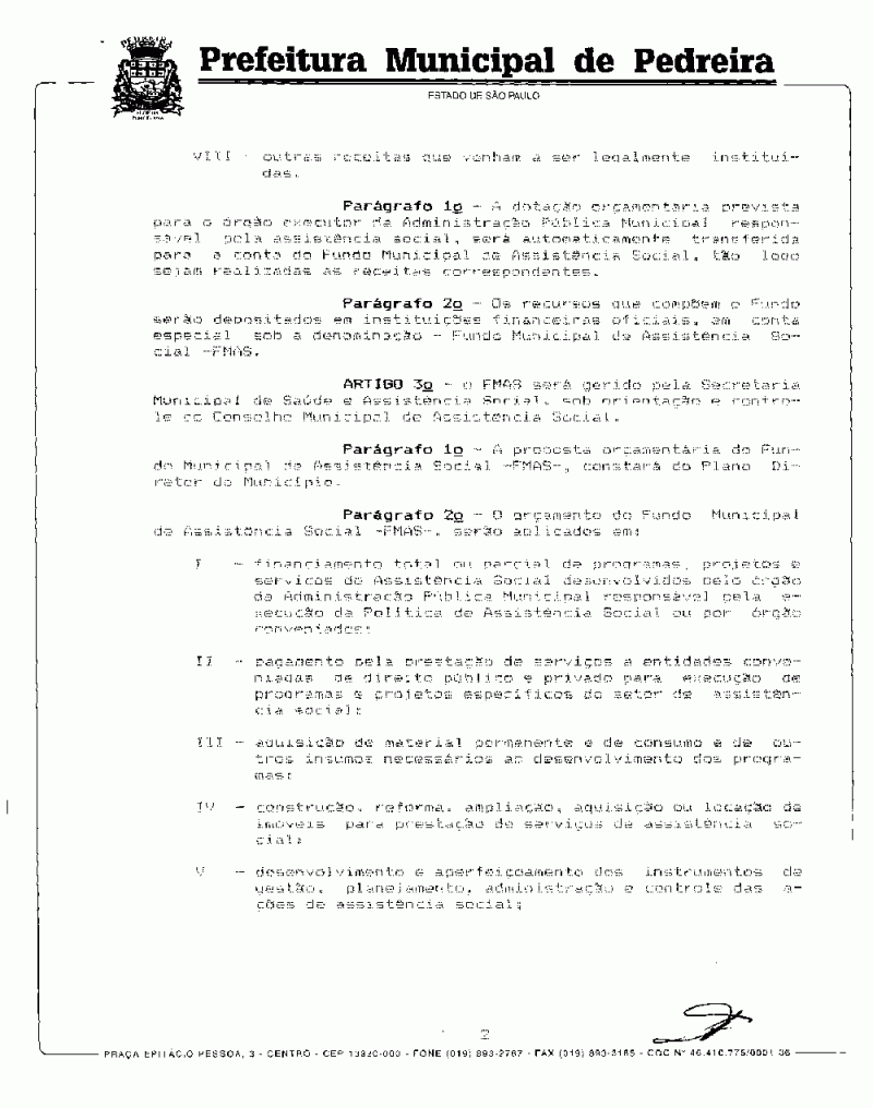 Ementa: Cria o Fundo Municipal de Assistência Social e dá outras providências.