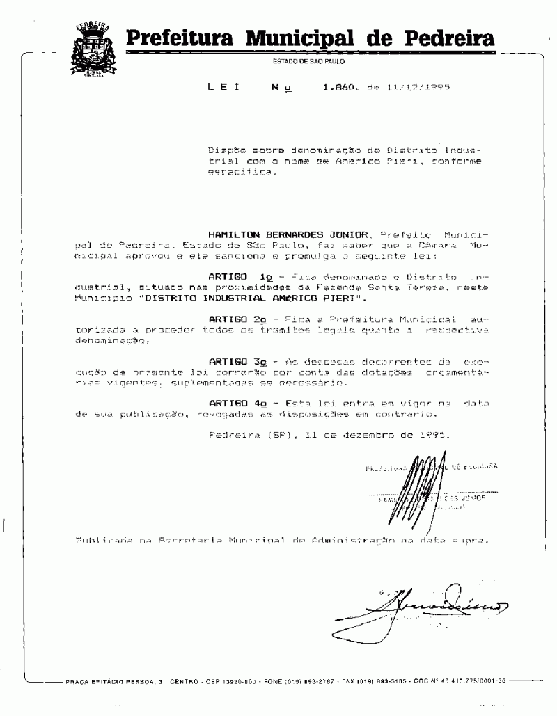 Lei Municipal - N° 1860 de 11/12/1995
