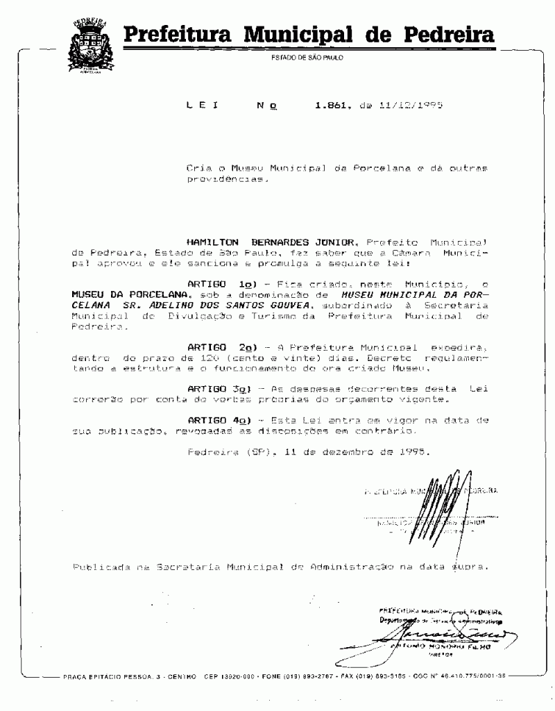 Lei Municipal - N° 1861 de 11/12/1995
