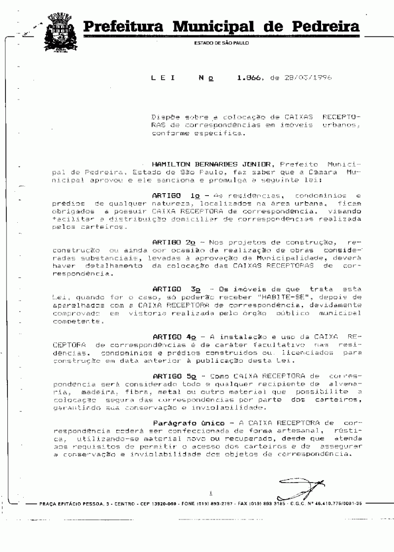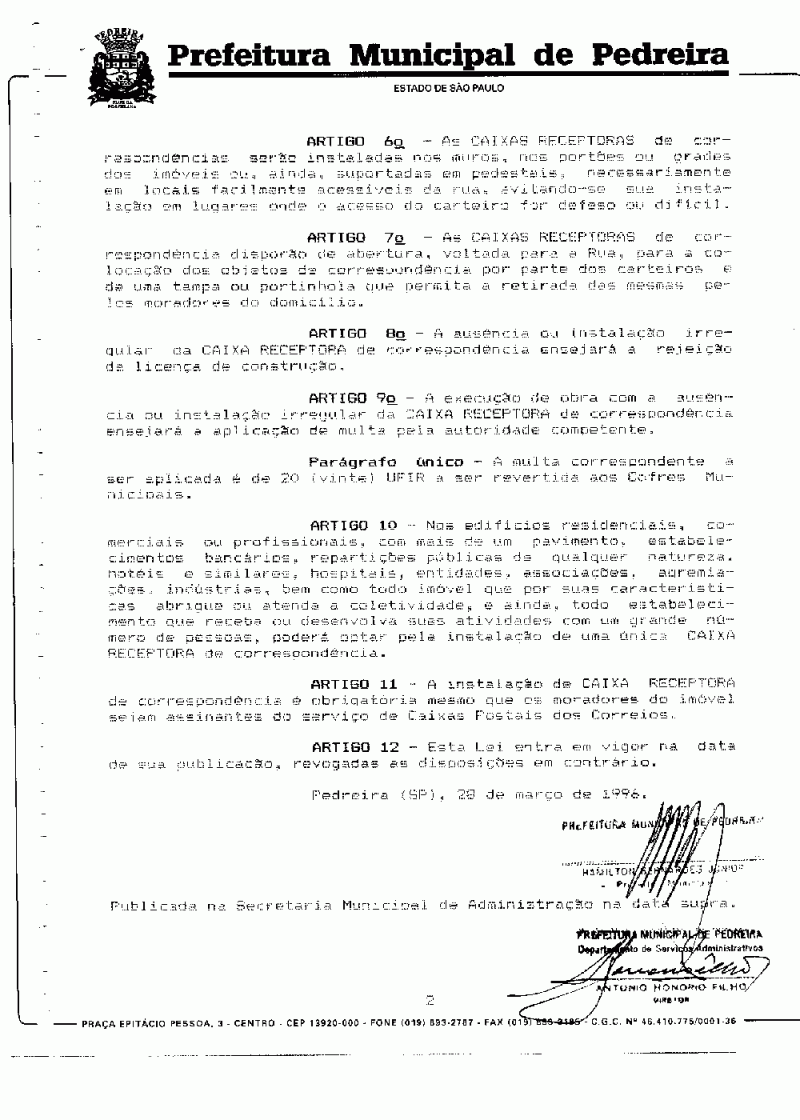Ementa: Dispõe sobre a colocação de Caixa Receptoras de correspondências em imóveis urbanos conforme especifica.