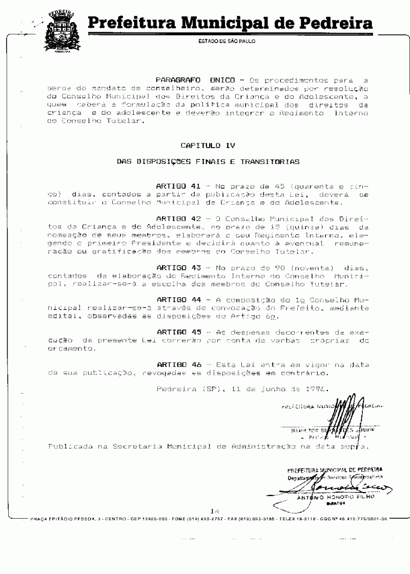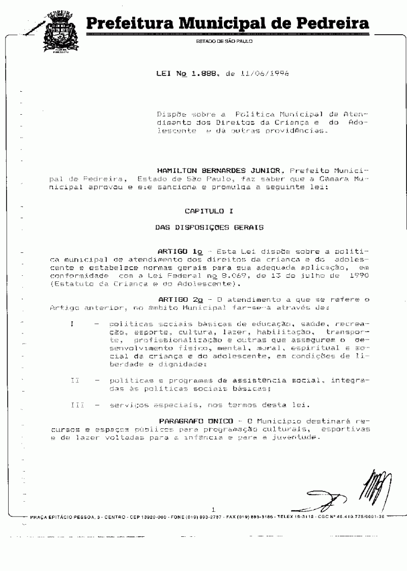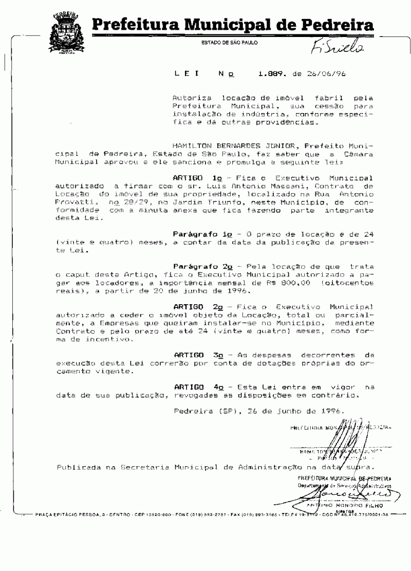 Lei Municipal - N° 1888 de 11/06/1996