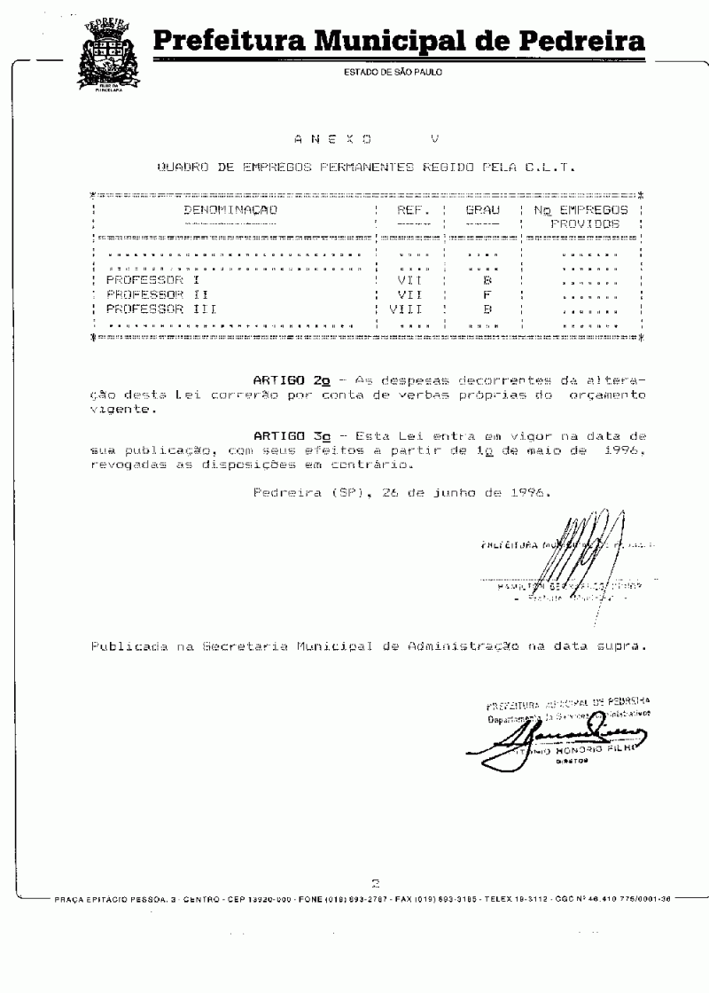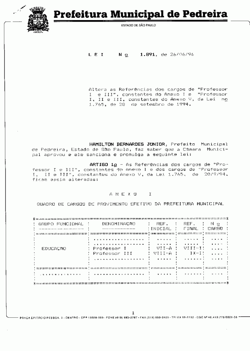 Lei Municipal - N° 1891 de 26/06/1996
