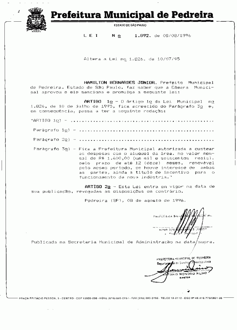 Ementa: Altera a Lei nº 1826, de 10/07/95.